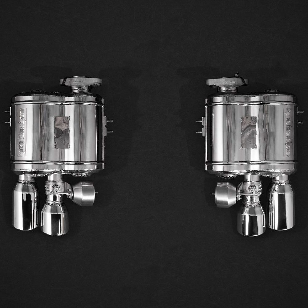 • The Capristo valves’ modulation, either opening or closing, is governed by the engine’s ECU, replicating the functionality of the stock exhaust. The default vacuum pipes seamlessly integrate with the Capristo valve mechanism. For enhanced control, one might consider the optional wireless remote, which grants the luxury of valve manipulation at one’s fingertips. When the valves are closed, control reverts to the engine ECU.
