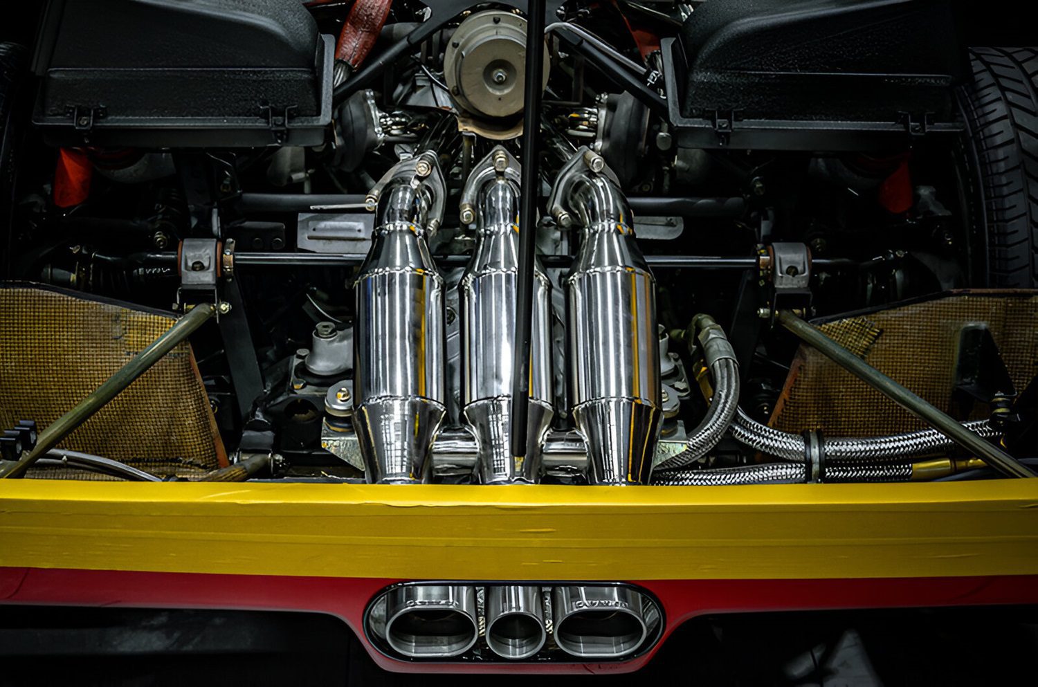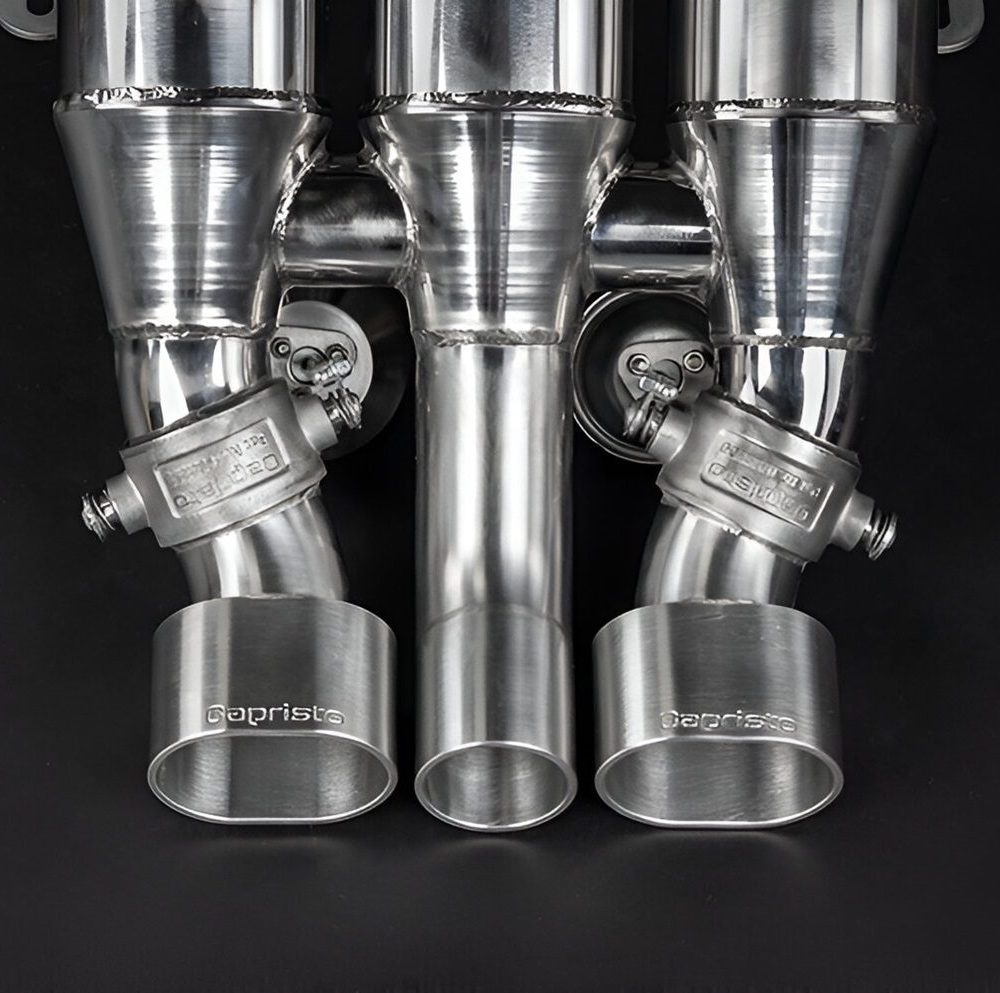 The Capristo Valved Exhaust System for the Ferrari F40 epitomizes the fusion of performance and aesthetics, offering an enhancement that is both audible and visually striking. Crafted from T309 stainless steel, this system not only promises durability but also contributes to the F40’s unique character with an unmistakable sound profile. The integration of a Valvetronic setup allows for a dynamic adjustment between a subdued elegance and a pronounced, aggressive note, catering to the driver’s mood and environment. Capristo’s dedication to perfection is evident in the exhaust tips, which are milled in-house to mirror the design of the original Ferrari tips, ensuring a flawless fit with the OEM bumper exhaust outlet and embodying the OEM+ concept.