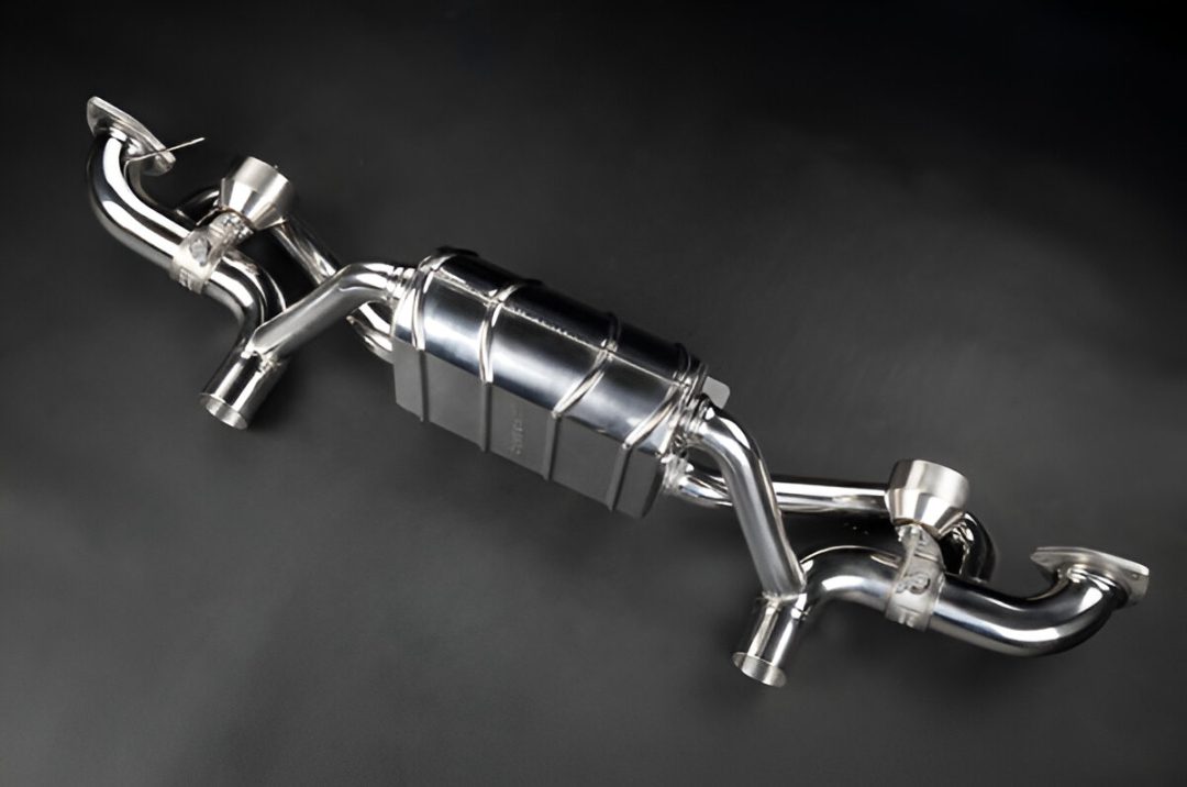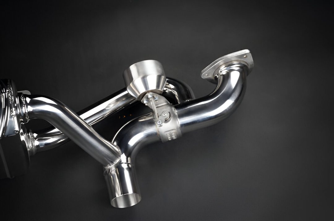 The iconic Capristo Valved Exhaust System delivers the best of both worlds, providing an aggressive exhaust note under acceleration while maintaining a more refined tone during city driving. This versatility is achieved through vacuum-actuated valve flaps that open and close based on driving conditions and driver input. At lower engine speeds or during cruising, the valves remain closed to create a deeper exhaust note. Under wide-open throttle, the valves open to unleash the full symphony of the engine. The exhaust valves are backpressure-controlled via the vehicle’s factory Porsche Sport Exhaust (PSE) control button within the cabin.