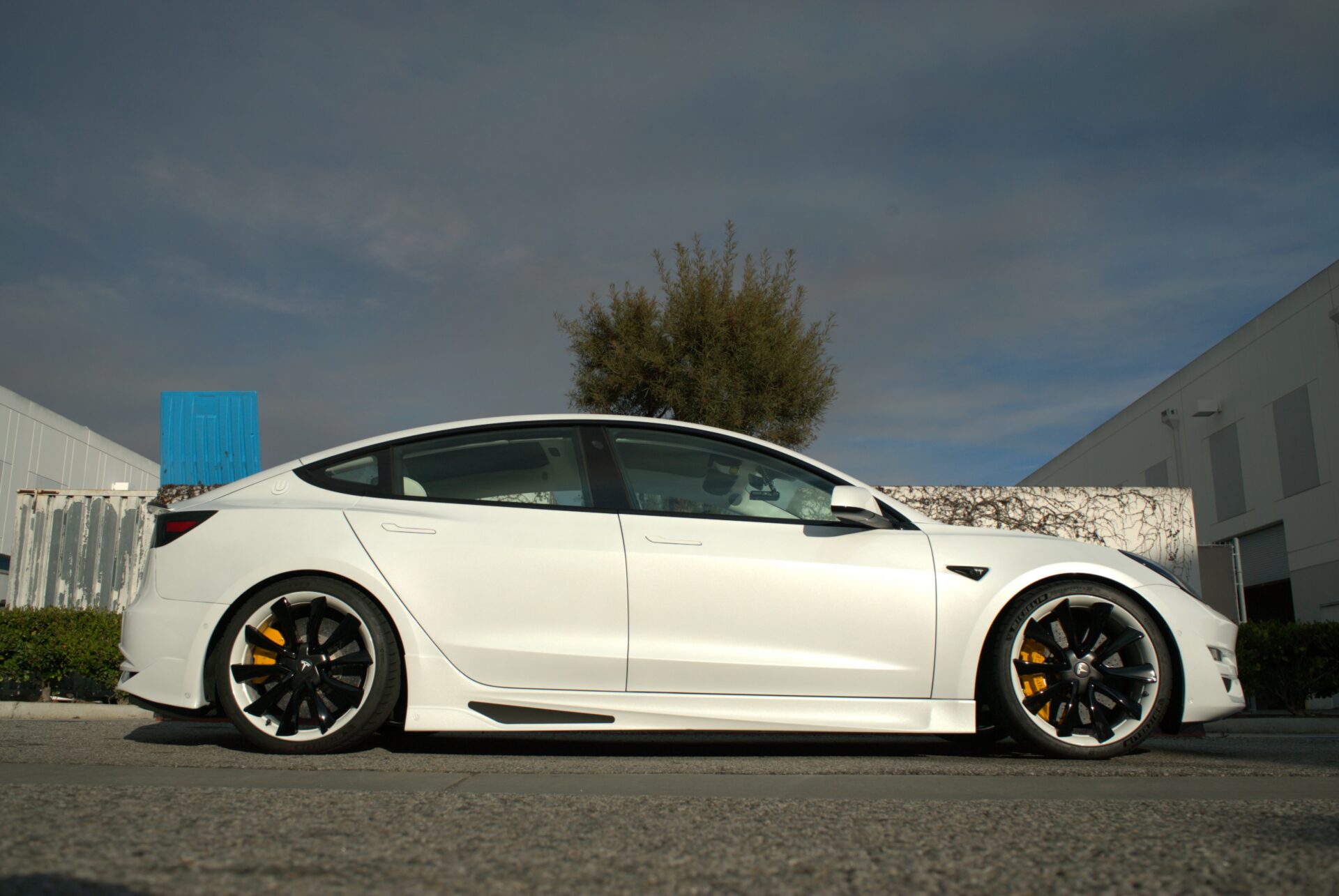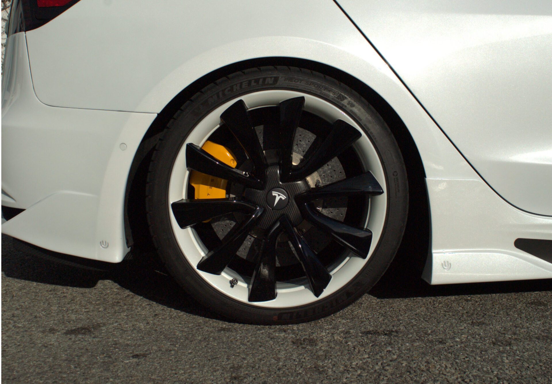 Our Tesla Model 3 BFB Carbon Ceramic Rear Big Brake Kit brings the magic of our BFB Front Kit, to the rear! Jump up from the small 13″ stock rotor to these giant 15″ carbon rotors, while dropping almost 3lbs of unsprung weight per corner.  The combination of increased effective radius of the clamping force multiplies the torque that the brake system can exert to slow your vehicle and is, therefore, a perfect combination to pair with a front big brake kit and high-performance tires.