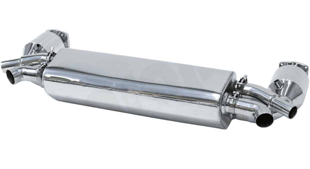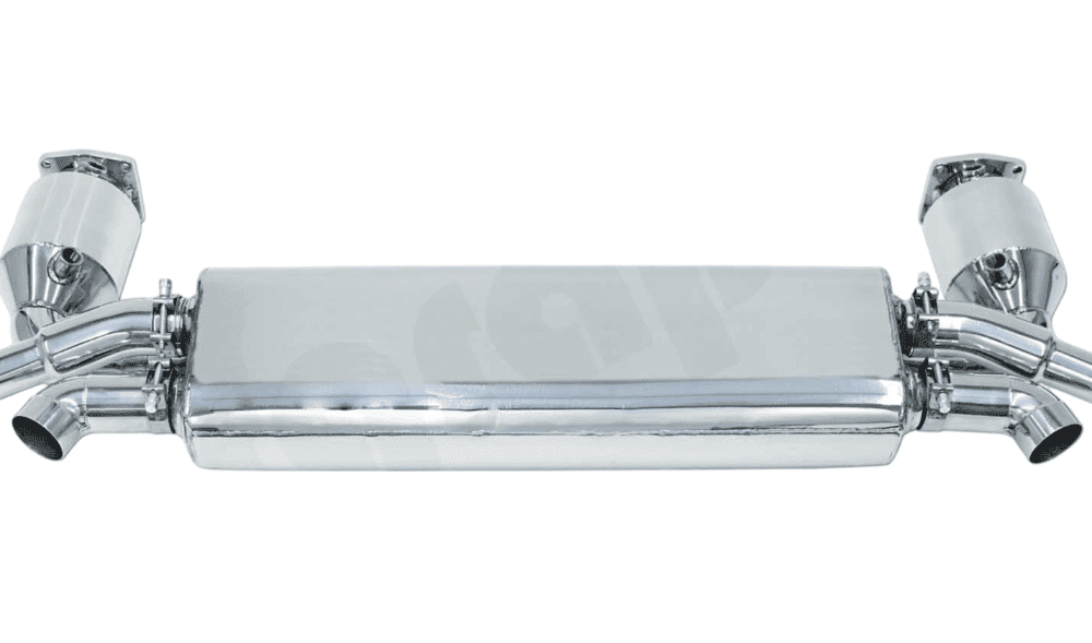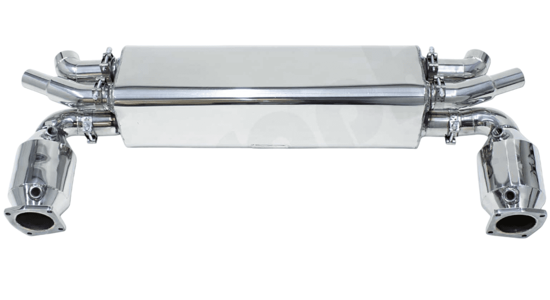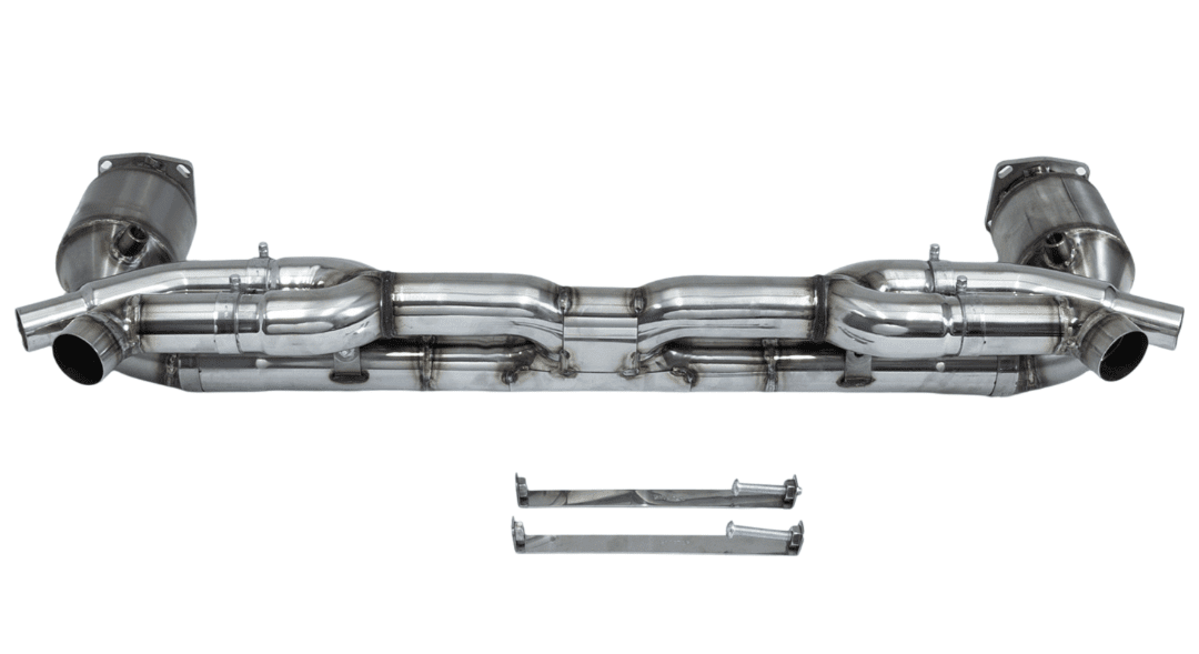 The CARGRAPHIC Non-Valved Turbo-Back Exhaust System with Sport Cats is designed for the discerning owner of the 991 Porsche 911 Turbo and Turbo S, delivering a significant boost in performance and sound. Constructed from premium stainless steel, this exhaust system is engineered to optimize exhaust flow, resulting in increased horsepower and torque. With a fixed sound level, this system offers a consistent, exhilarating exhaust note that amplifies the driving experience without the complexity of valve control. Perfectly tailored for a precise fit, this exhaust system not only enhances the vehicle’s performance but also adds a powerful, sporty character to your Porsche 911.