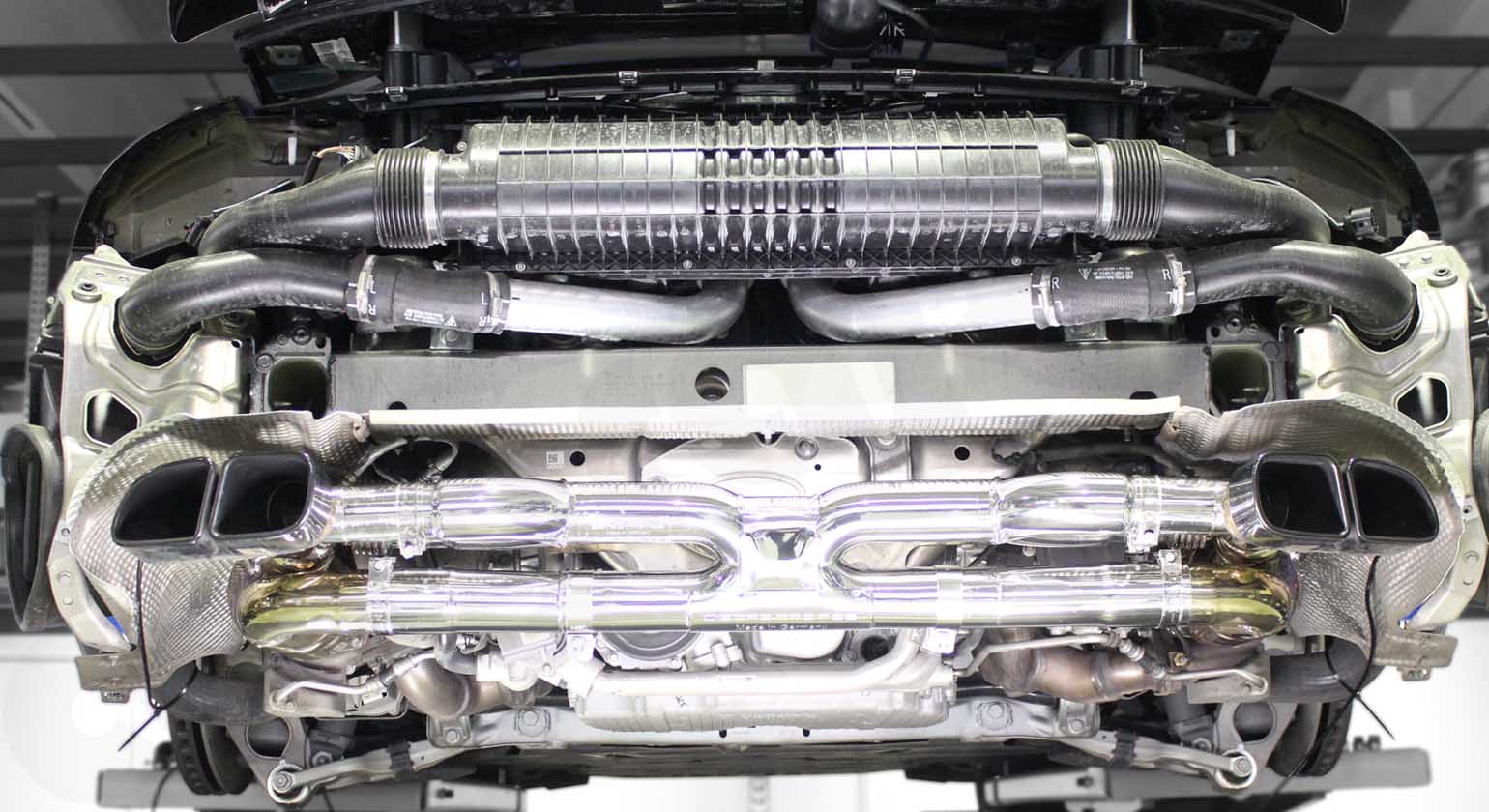 The CARGRAPHIC Valved Turbo-Back Exhaust System with Race Cats is engineered for the 991 Porsche 911 Turbo and Turbo S, offering unparalleled performance and an exhilarating driving experience. Crafted from high-quality stainless steel, this exhaust system features a sophisticated valve control mechanism that allows for adjustable sound levels, ensuring a perfect balance between daily comfort and aggressive sportiness. The inclusion of race catalytic converters enhances exhaust flow, boosting horsepower and torque. Designed with precision to fit seamlessly, this system not only improves performance but also adds a distinct, race-inspired sound to your Porsche 911.