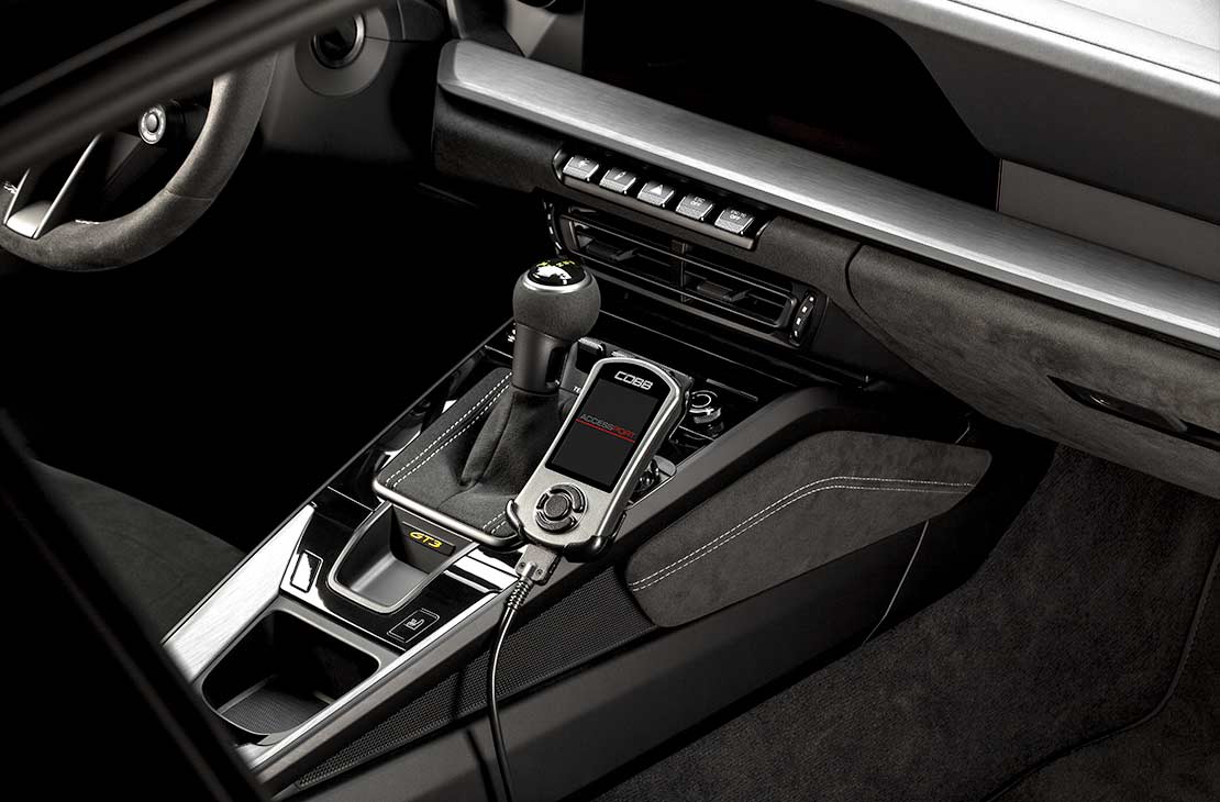 COBB Tuning introduces the Accessport for the Porsche 992 GT3, offering simple ECU flashing with an integrated gauge package. The in-cabin mountable Accessport V3 features a large, full-color, high-resolution screen that displays up to six real-time parameters. It is fully customizable in appearance (with multiple bezel colors), layout (race, street, or dyno gauge clusters), and mounting options (compatible with thousands of standard vehicle mounts). With enhanced processing power, memory, and storage, it enables faster flashing and easy storage of maps and logs. To use the Accessport, the vehicle’s ECU must be shipped to COBB Tuning for unlocking.