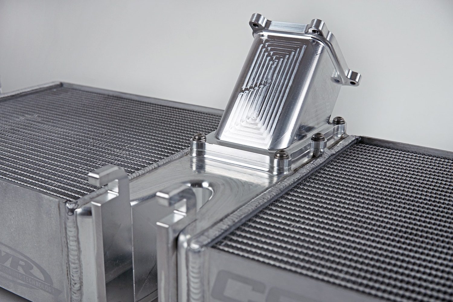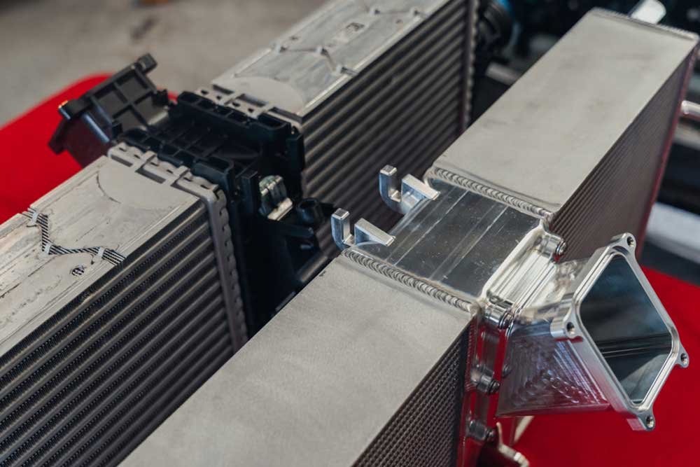 • CNC Machined Billet Construction: CSF also highlights the 100% TIG-welded, all-aluminum construction in place of the OEM crimped plastic end tanks. This upgrade is especially critical in high-boost and motorsport environments, where plastic tanks can fail under elevated pressure or vibration, while the welded aluminum design enhances strength, durability, and reliability.
