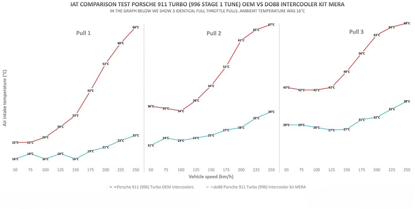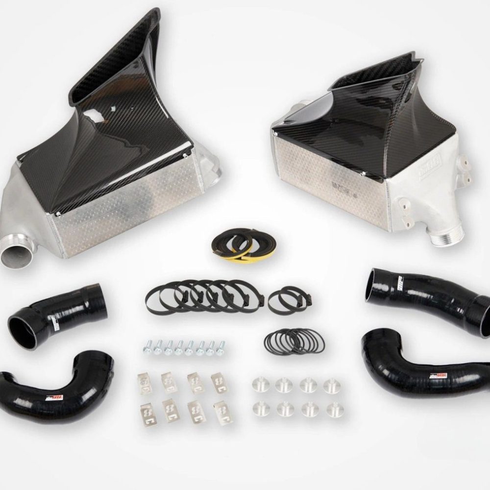 The do88 Performance MERA Intercooler Kit is expertly crafted to boost the efficiency and performance of the 996 Porsche 911 Turbo. It features precision-engineered cast end tanks and a custom-designed upper ambient air guide, ensuring optimal integration and airflow across the core. The kit includes large 70mm connections and high-temperature resistant hoses that are 3D-designed and CFD-tested. Additionally, carbon ducts with tight seals ensure that all air passes through the core, enhancing heat transfer. Compatible with OEM or do88’s 63.5mm Y-pipe, this intercooler kit is engineered to significantly improve cooling and airflow for superior vehicle performance.