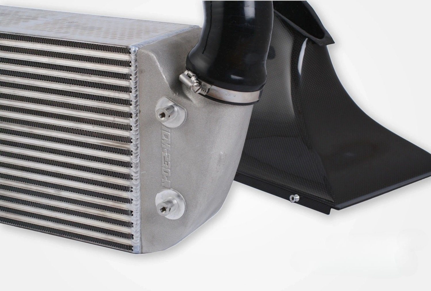 • The do88 intercoolers for the 997.2 Porsche 911 achieve a notable 51.8°F reduction in intake air temperature and a 19% improvement in airflow over the previous version. Featuring cast end tanks for precise airflow distribution and 70mm connections with CFD-tested hoses, these intercoolers enhance cooling efficiency while minimizing pressure drop. The kit includes a lightweight prepreg carbon air duct with proper seals to optimize ambient air usage, along with a 3D-scanned upper ambient air guide to ensure seamless integration with the vehicle’s components. High-temperature hoses, rated to withstand 464°F, provide enhanced durability and airflow efficiency.