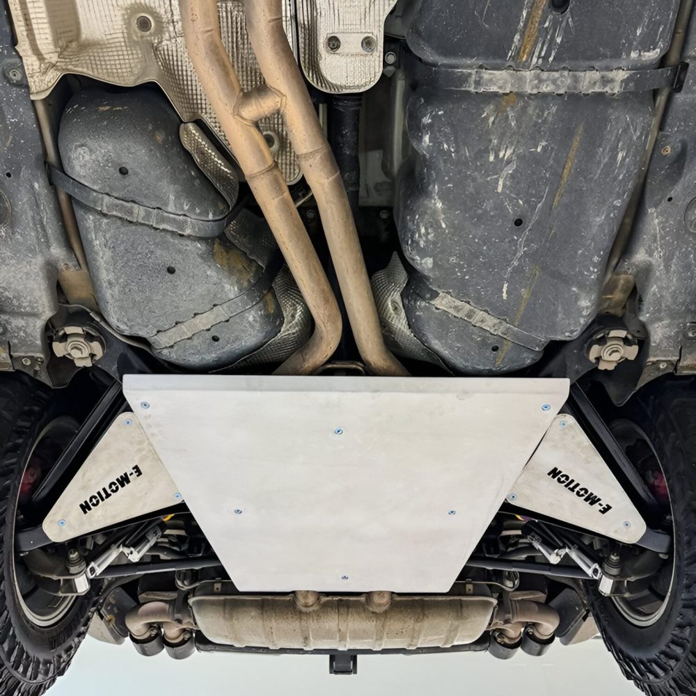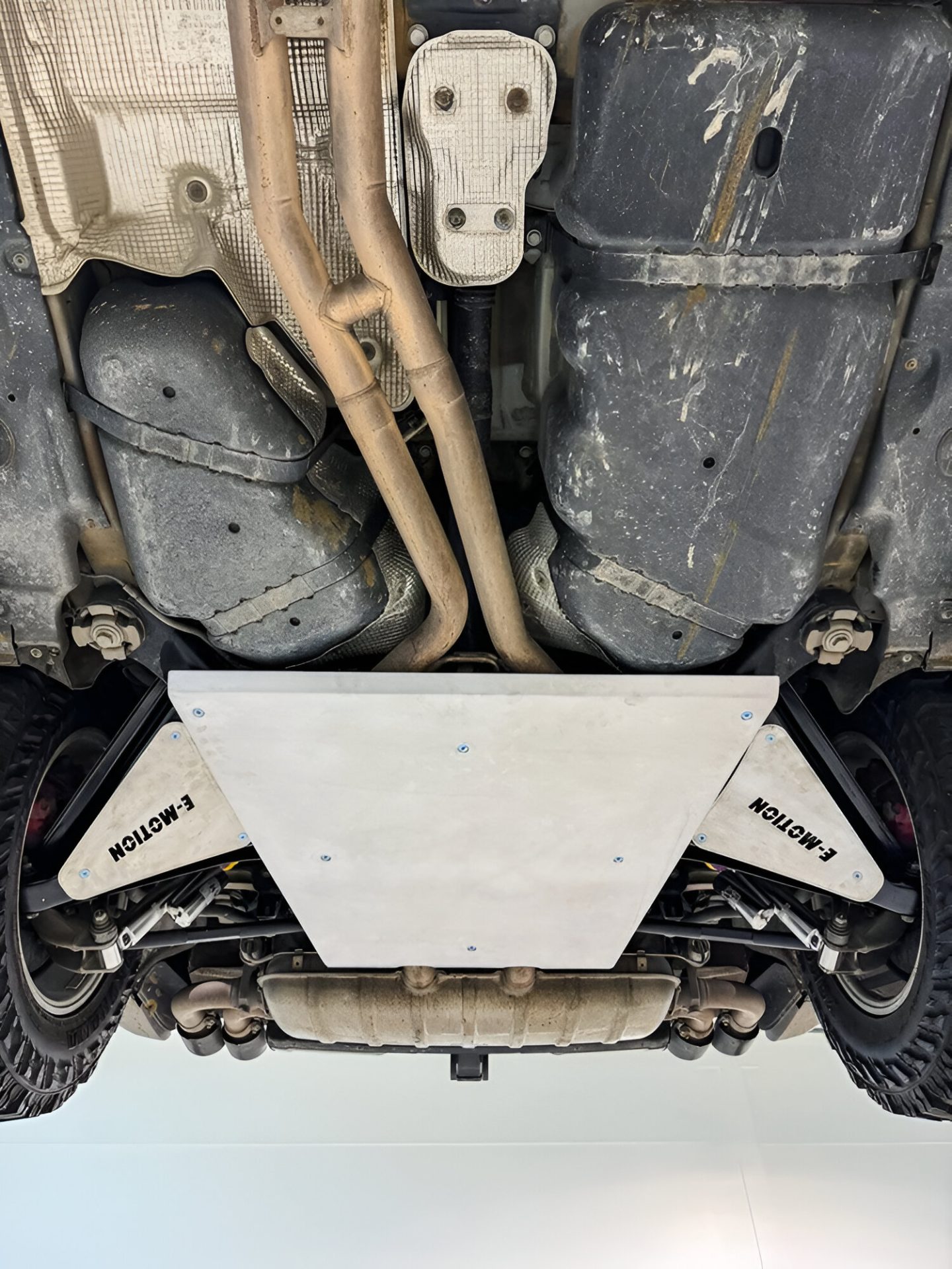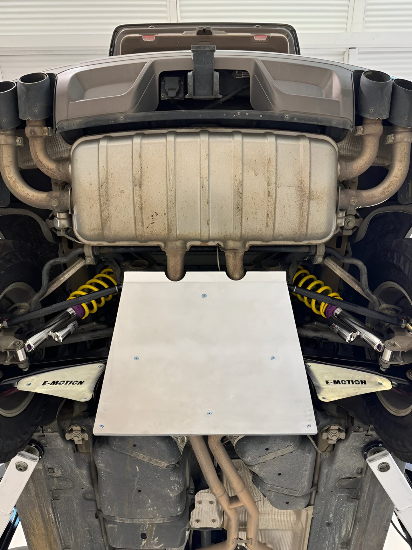 E-Motion’s Rear Differential Skid Plate for the 958 Porsche Cayenne offers maximum protection for the rear differential during off-road use. Made from high-strength materials, it ensures durability and easy installation, enhancing off-road capability and safeguarding the drivetrain from damage.