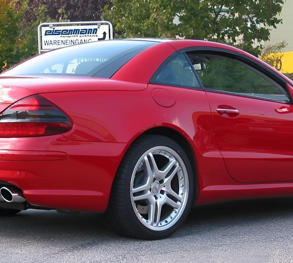 The Eisenmann Exhaust System for the R230 Mercedes-Benz SL55 AMG is a handcrafted performance upgrade from engineers experienced in OEM systems for Porsche and AMG, offering two sound levels — Sport for a balanced aggressive tone and Race for a louder roar — along with quad 120 x 77mm tips for enhanced aesthetics, optimized exhaust flow, and an exhilarating driving experience.