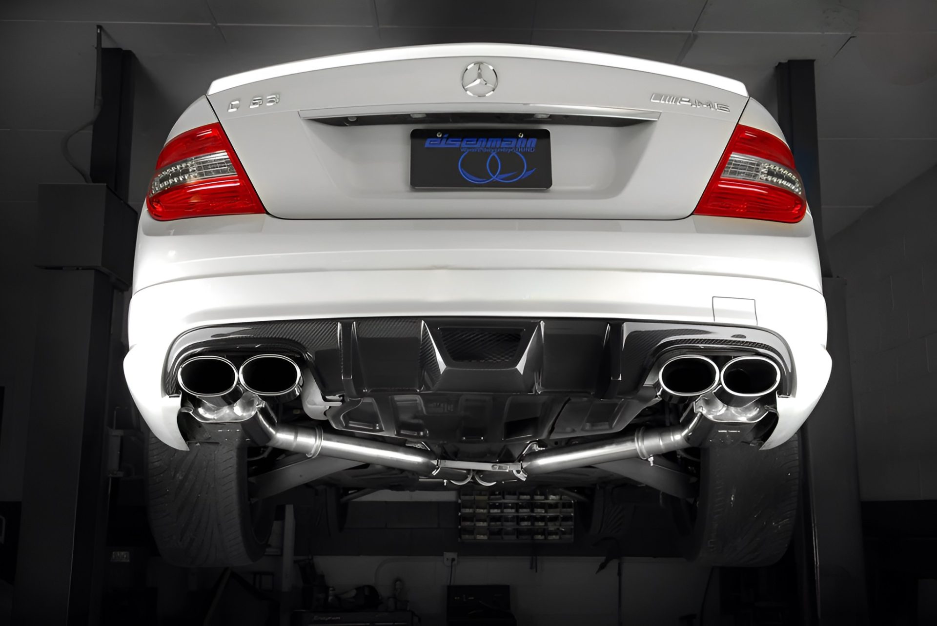 The Eisenmann Exhaust System for the W204 Mercedes-Benz C 63 AMG offers two sound levels — Sport and Race — and features quad 120 x 77mm exhaust tips. Handcrafted in Germany, it improves exhaust flow, reduces backpressure, and enhances engine performance while providing a more aggressive, dynamic exhaust note.