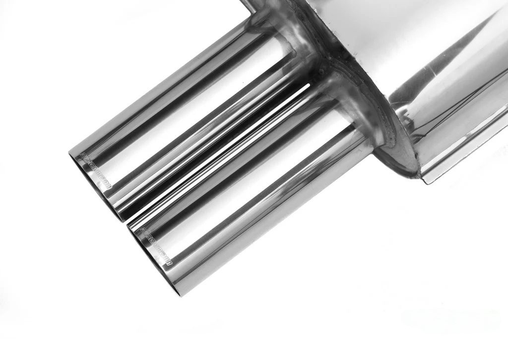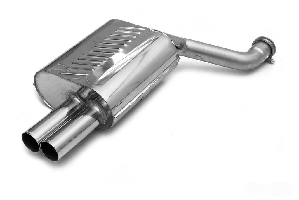 The Eisenmann Non M-Tech Rear Muffler for the E39 BMW 520i, 523i, 525i, 528i, and 530i with the M52 or M54 inline-six engine is a meticulously crafted performance exhaust system tailored specifically for vehicles equipped with the standard (non M-Tech) rear bumper. Designed and handcrafted in Germany, this system reflects Eisenmann’s renowned attention to quality and engineering excellence. It is offered in two distinct sound profiles Sport, which delivers a smooth, deep tone ideal for daily driving comfort, and Race, which produces a bolder, more aggressive note that adds excitement to spirited driving. The system features dual 76mm polished stainless steel tips, providing a clean, purposeful appearance that complements the E39’s timeless design. Constructed from high-grade stainless steel, it not only resists corrosion but also improves exhaust flow and throttle response for a more engaging and responsive driving experience. With a direct bolt-on design and factory-style fitment, this exhaust offers an ideal upgrade for enthusiasts who want to enhance both the acoustics and aesthetics of their E39 without sacrificing daily drivability or OEM integration.
