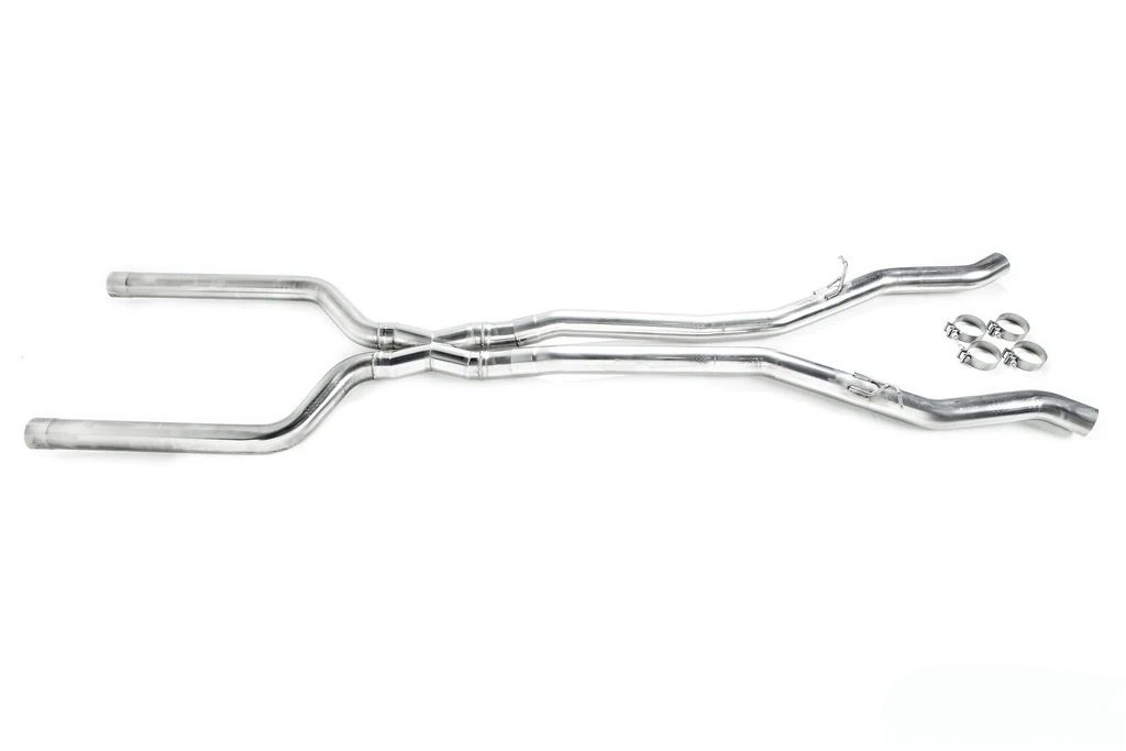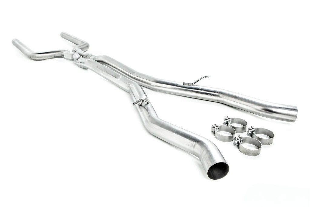 The Eisenmann Non-Resonated Center Pipe for the G90 / G99 BMW M5 replaces the factory slip-on design with a fully bolt-on setup, enhancing exhaust flow and sound. Eliminating the resonators, it delivers a more aggressive exhaust note while boosting horsepower and torque, providing a more exhilarating driving experience. Crafted from premium 304 stainless steel, this upgrade is designed for optimal performance and fitment.