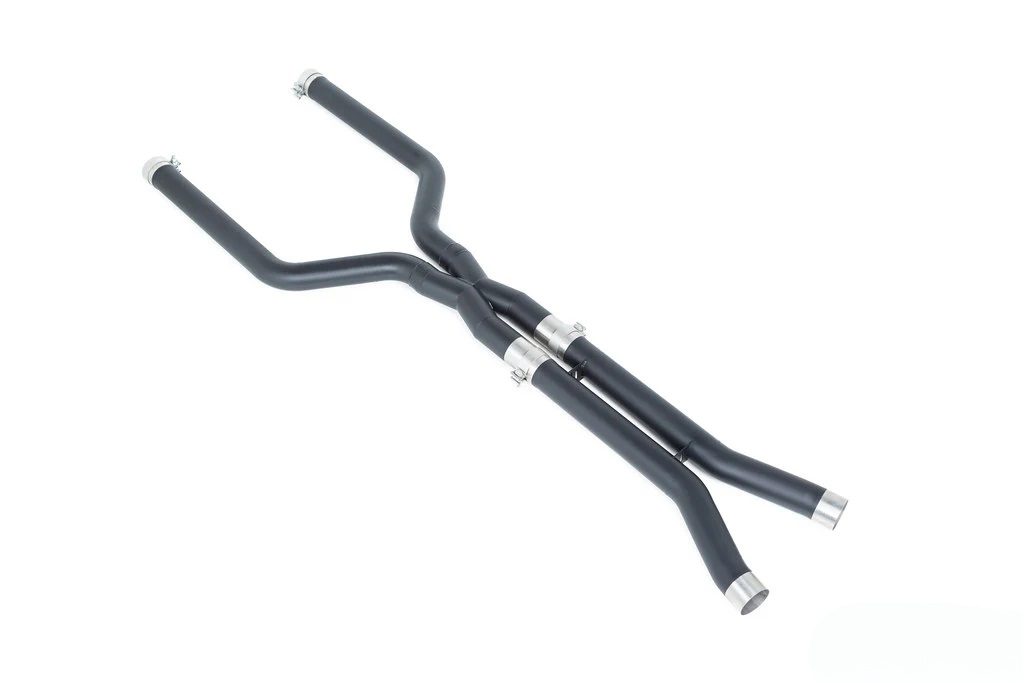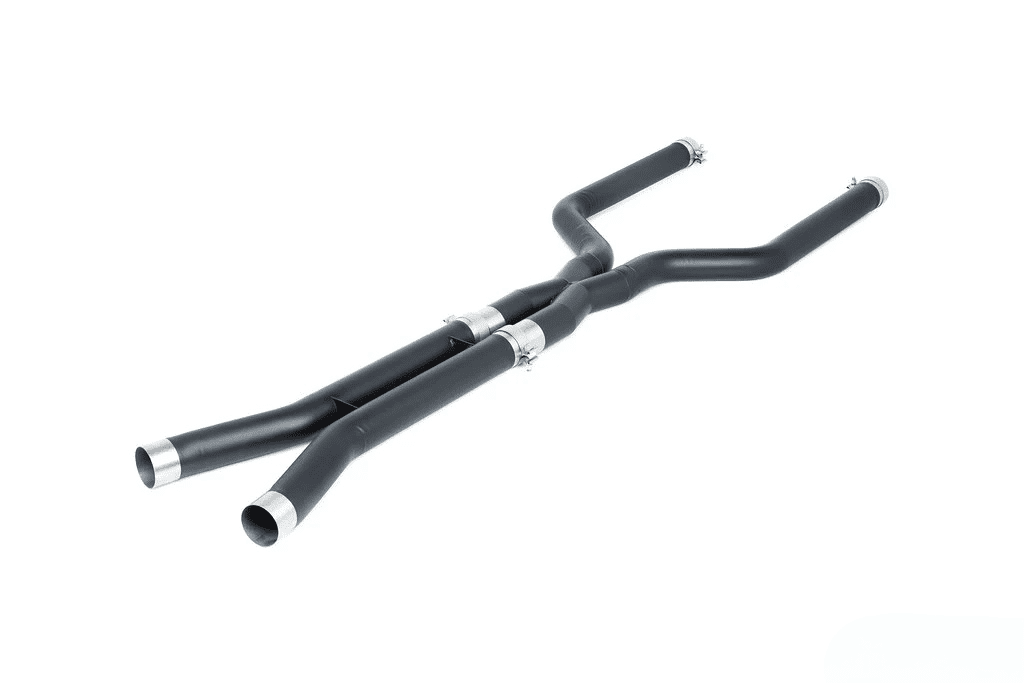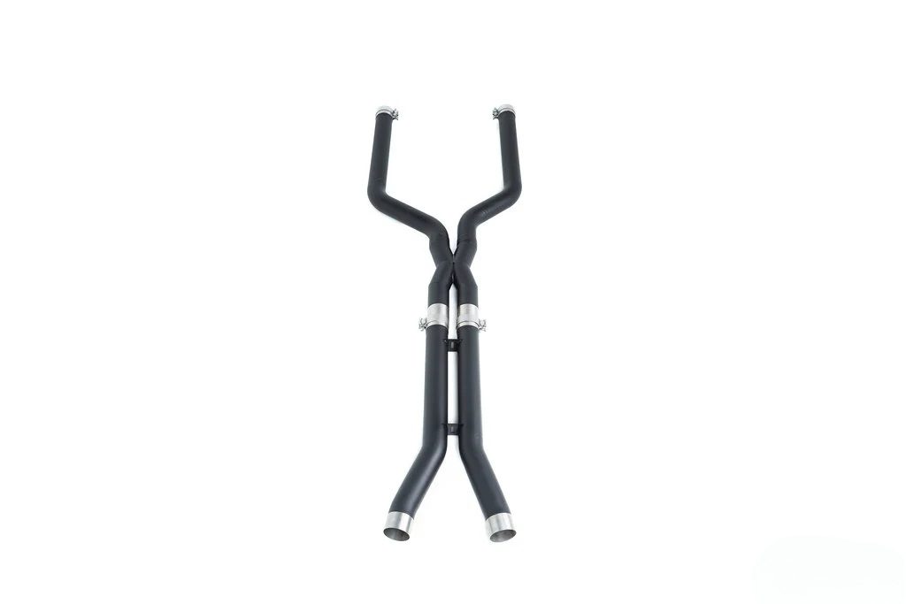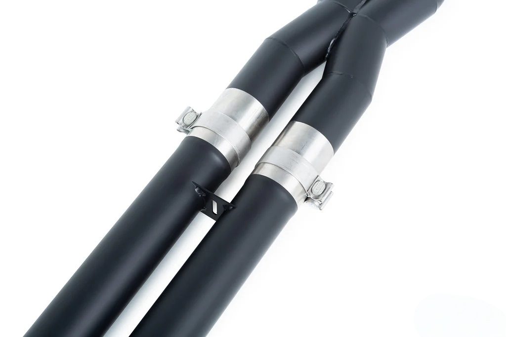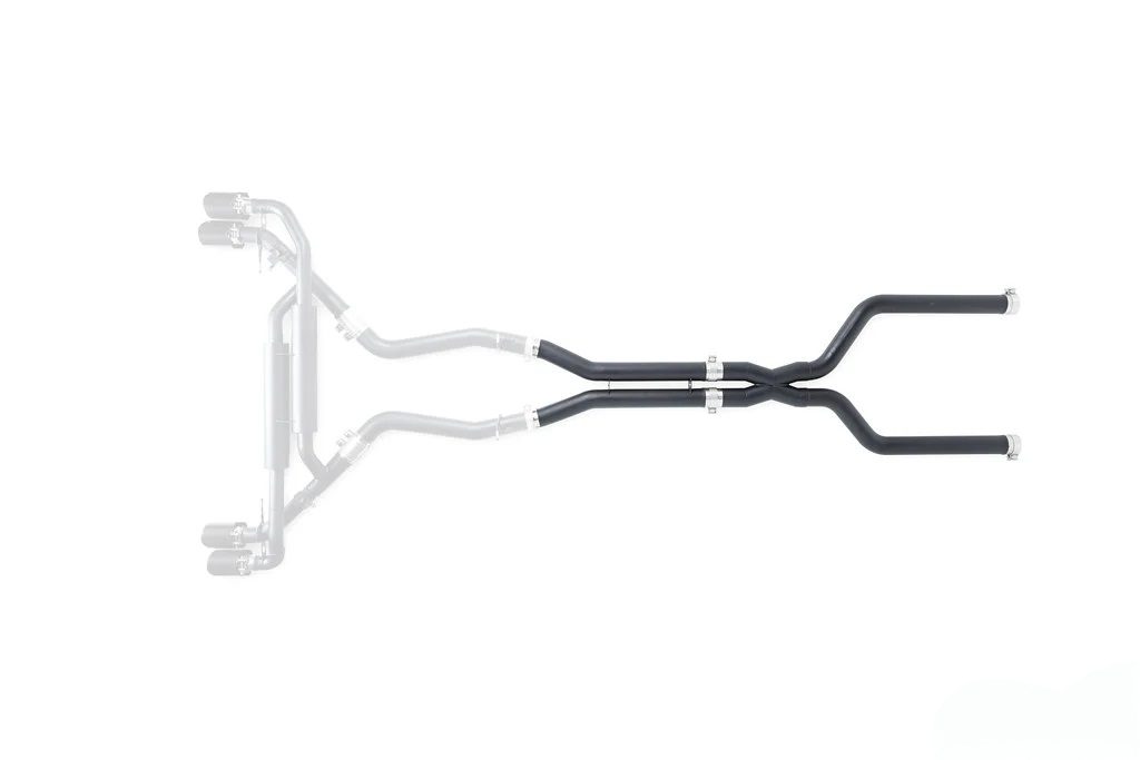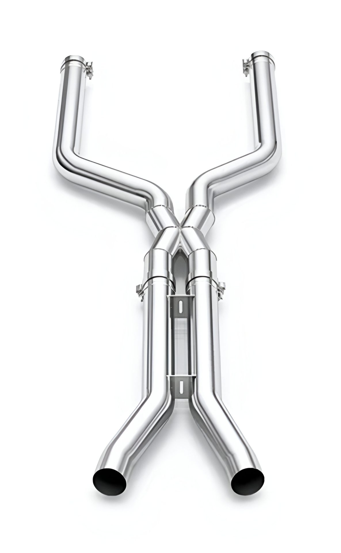 The Eisenmann Non-Resonated Center Pipes for the F95 BMW X5M and F96 X6M offer a bolt-on solution that enhances exhaust flow and delivers a more aggressive sound. Available with an optional Black Series ceramic coating for improved heat dissipation and corrosion resistance, these pipes are compatible with flange or clamp-style downpipe connections.