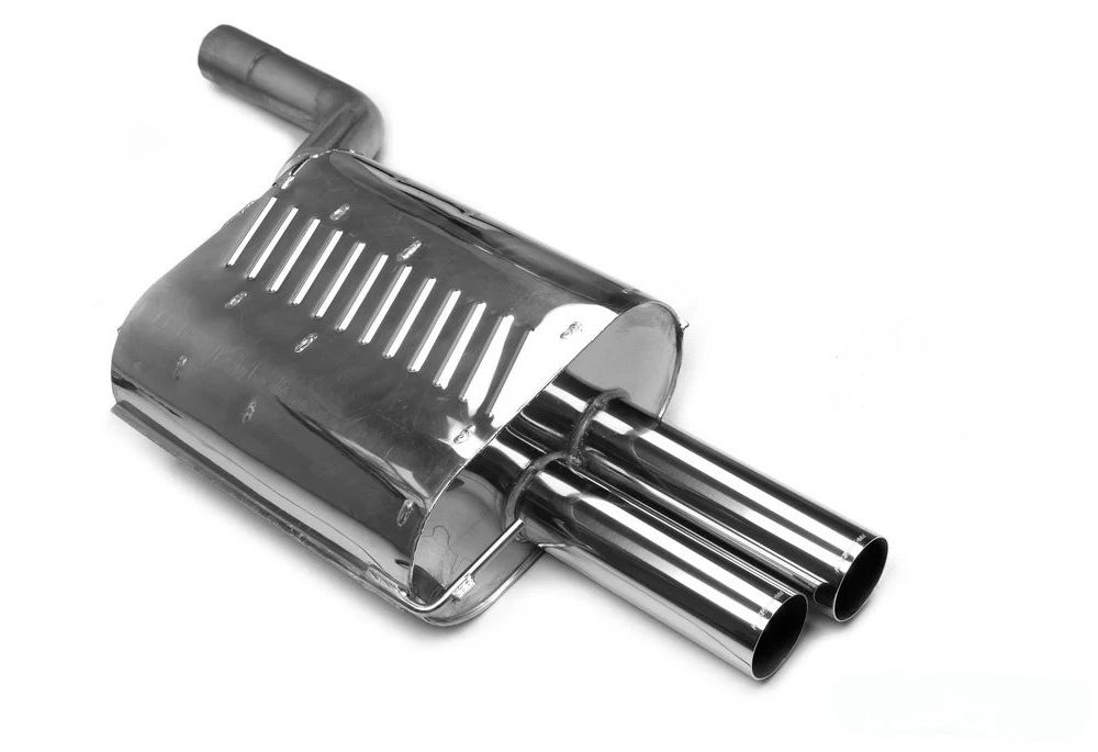 The Eisenmann Rear Muffler for E60/E61 BMW 540i & 545i (V8) delivers a choice of Sport or Race sound, improved exhaust flow, and dual 76mm or 83mm polished tips for enhanced performance and a bold rear-end look.