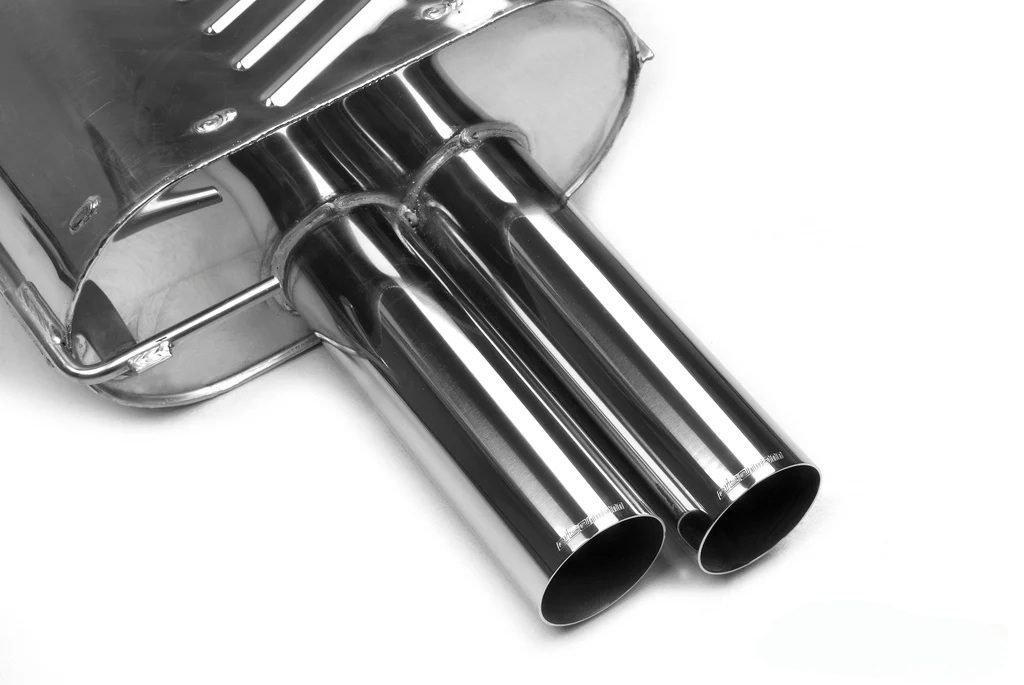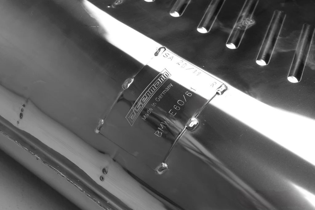 The Eisenmann Rear Muffler for the E60 / E61 BMW 540i and 545i is a performance exhaust engineered exclusively for the V8 platform, combining precision craftsmanship with unmistakable sound. Hand-built from premium stainless steel, it is offered in two sound levels — Sport for a refined, deep tone or Race for an aggressive, track-inspired character — allowing drivers to tailor the exhaust note to their preference. Available with dual 76mm or 83mm polished tips, the system not only improves exhaust flow and responsiveness but also enhances the rear profile of the 5 Series with a bold, purposeful look.