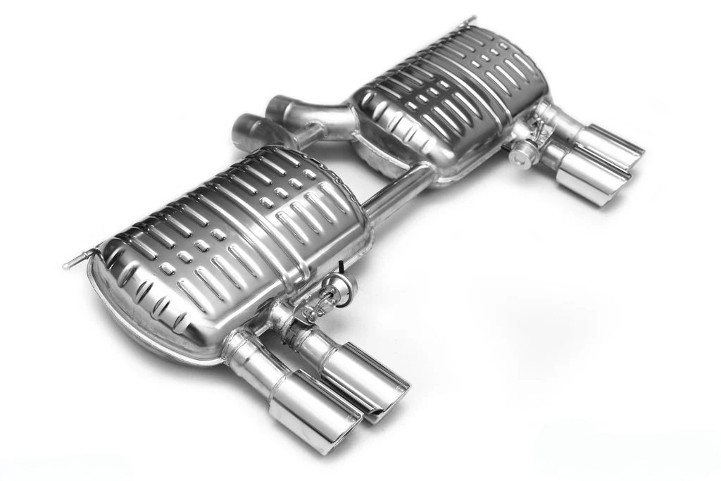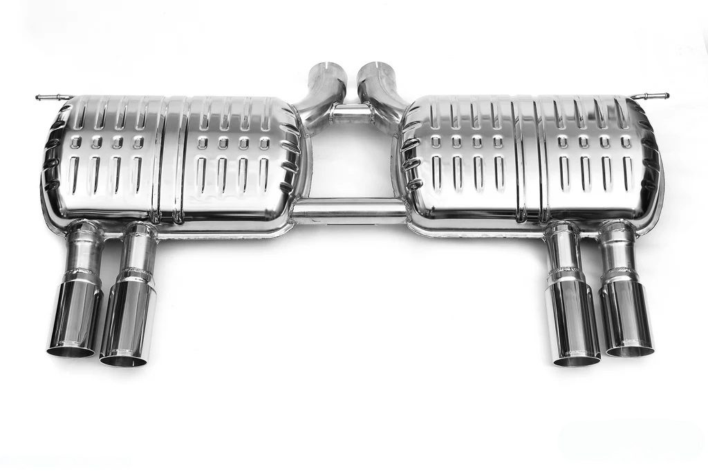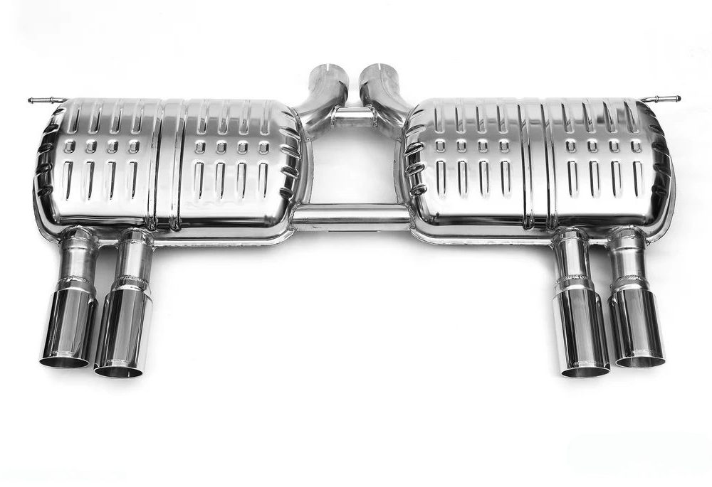 The Eisenmann Rear Muffler for E71 BMW X6M delivers a handcrafted performance exhaust with your choice of Sport or Race sound, quad 90mm tips, and an optional Black Series upgrade, combining premium German engineering with aggressive sound and style.