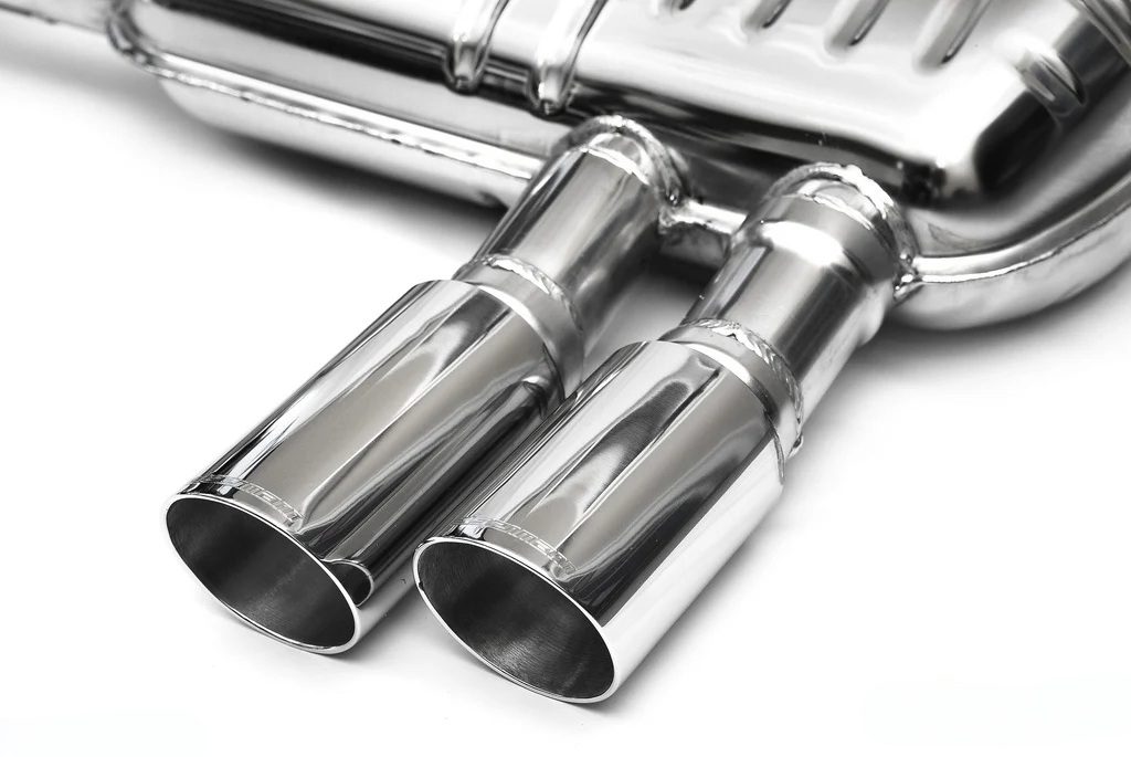 he Eisenmann Rear Muffler for the E71 BMW X6M is engineered to transform both the sound and presence of BMW’s high-performance SUV, offering a perfect blend of German craftsmanship and motorsport heritage. Available in Sport or Race sound levels, this system delivers a commanding exhaust note tailored to your driving style, from refined aggression to uncompromising intensity. Drivers can choose quad 90mm tips for a bold, modern look or opt for the stealthy Black Series upgrade for a more aggressive edge. Precision-built from premium stainless steel, the Eisenmann system not only enhances acoustics and aesthetics but also reflects a commitment to performance and durability worthy of the X6M badge.
