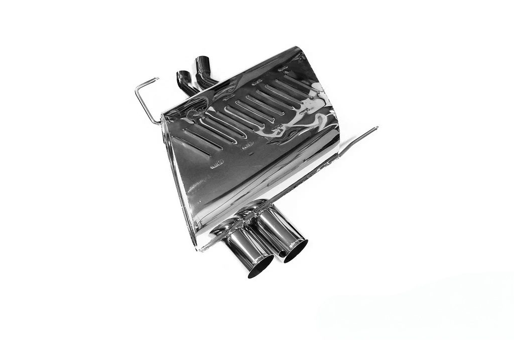 The Eisenmann Rear Muffler for the E85/E86 BMW Z4 (N52) is a performance exhaust upgrade designed specifically for models with the N52 engine, enhancing both sound and appearance. Available in two distinct sound levels — Sport for a refined tone and Race for a more aggressive, motorsport-inspired growl — this system allows drivers to personalize their exhaust experience. It features dual or quad 76mm round tips, with the quad configuration offering a bolder, more dynamic look, though it may require rear bumper modification for proper fitment. Handcrafted in Germany from premium materials, this rear muffler improves exhaust flow, reduces backpressure, and enhances engine performance, delivering a more engaging and powerful driving experience tailored for the N52 engine.