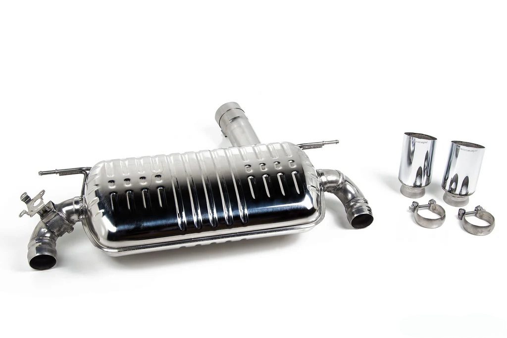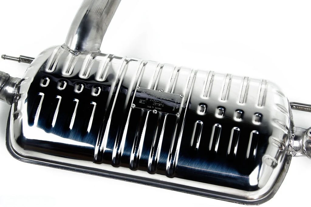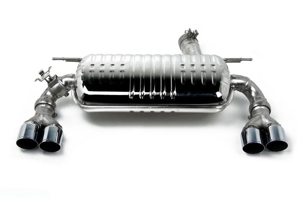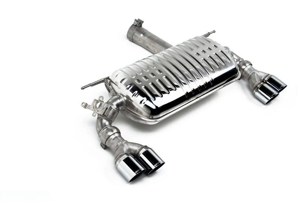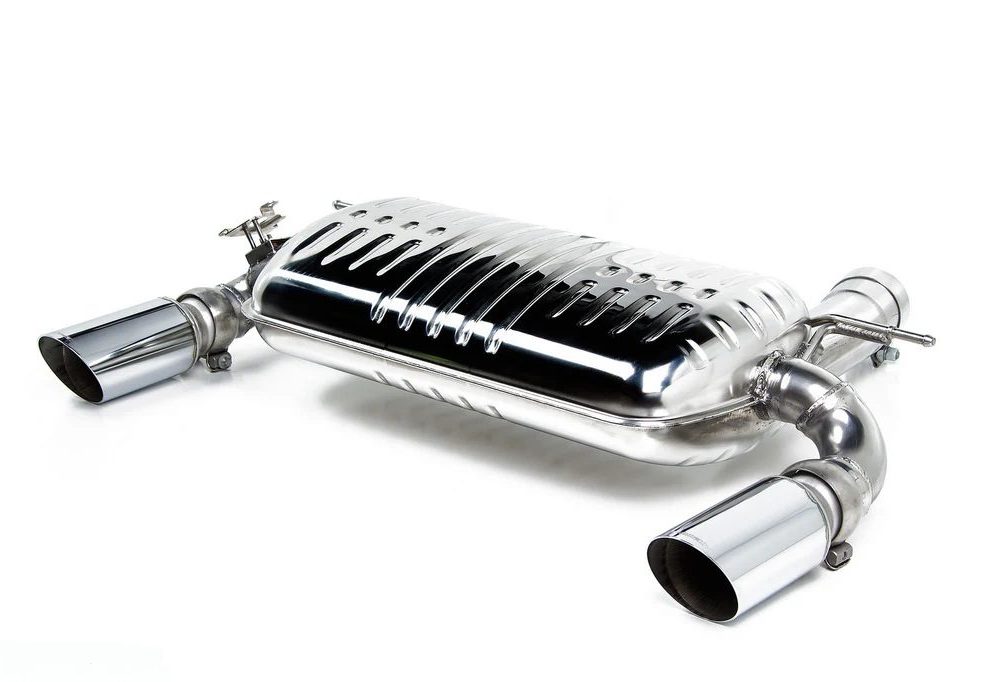 The Eisenmann Rear Muffler for the facelifted F3x BMW 340i and 440i is a handcrafted performance exhaust system built to enhance both the auditory and aesthetic presence of BMW’s turbocharged inline-six. Constructed in Germany from premium stainless steel, this system is available in two signature sound profiles — Sport, for a deep and refined tone suitable for daily use, and Race, for a louder, more aggressive soundtrack that emphasizes performance. With a choice between dual 90mm round tips for a factory-like finish or quad 76mm round tips for a bold, motorsport-inspired appearance, the exhaust offers visual customization to match its elevated sound. Engineered to optimize exhaust flow and reduce backpressure, the Eisenmann muffler improves throttle response and driving engagement while maintaining a factory-quality fit using OEM mounting points.