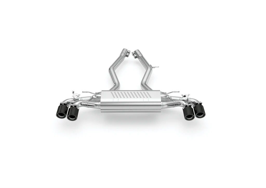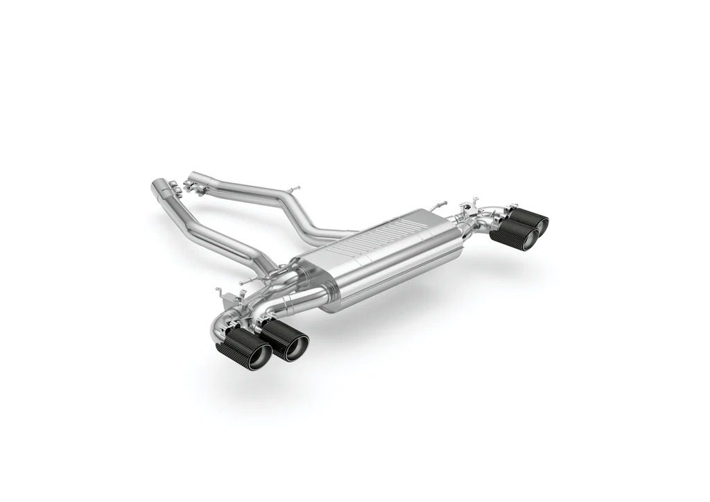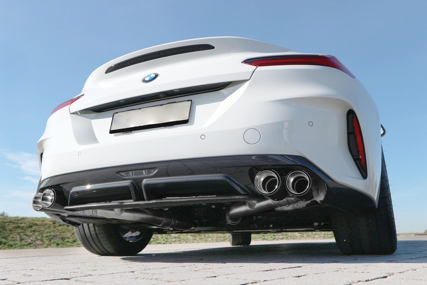 The Eisenmann Rear Muffler for the G29 Z4 M40i brings German-engineered performance and signature style to BMW’s open-top sports car. Built from premium stainless steel and developed with precision in Stuttgart, this system offers an aggressive yet refined tone through a Valvetronic design that adapts sound output to driving conditions. Tailored for both form and function, it features quad 90mm tips available in either Signature straight-cut or LeMans slash-cut styles, with finish options including chrome with brushed aluminum, black anodized, or carbon fiber. As a slip-on system, it seamlessly integrates with factory mounting points after a simple cut to the OEM exhaust, delivering a perfect fit with a bold, expressive voice. Whether carving through mountain roads or cruising under the sun, this Eisenmann exhaust elevates the Z4’s character with unmatched craftsmanship and dynamic presence.