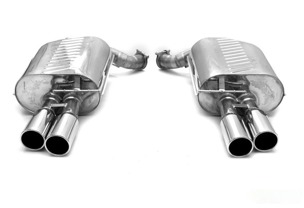 The Eisenmann Rear Mufflers for E63 & E64 BMW 645ci are a high-performance upgrade designed to elevate both the sound and presence of your 6-Series coupe or convertible. Handcrafted in Germany from premium stainless steel, these mufflers offer two selectable sound profiles — Sport, for a deep, refined tone perfect for everyday driving, and Race, for a bold, aggressive exhaust note that commands attention. Finished with quad exhaust tips in either 76mm or 83mm, the system enhances the rear aesthetics while improving exhaust flow and throttle response. With precise fitment and Eisenmann’s signature craftsmanship, these mufflers deliver a seamless blend of performance, durability, and style.