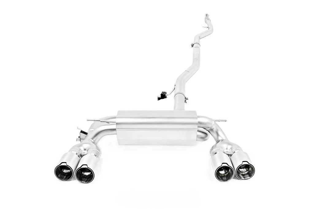 The Eisenmann Valved Exhaust System for the F87 BMW M2 is a meticulously developed, downpipe-back performance exhaust engineered to match the purity and driving focus of BMW’s modern classic. Designed over a 10-month collaboration with IND, this system delivers a refined yet aggressive sound that stays true to the M2’s character — deep, smooth, and free of excessive rasp. Featuring evenly sized piping for optimized gas flow, a concealed canister design for a clean rear aesthetic, and perfectly positioned quad tips, this system is built to perform and impress. Available with a variety of tip styles and finishes — including brushed black, and silver tips — it complements the M2’s aggressive styling. Valve control is integrated seamlessly, allowing the driver to adjust sound on demand using the factory controls. Handcrafted in Stuttgart from 304-grade stainless steel, the Eisenmann M2 exhaust system is a premium upgrade for enthusiasts seeking both performance and precision.