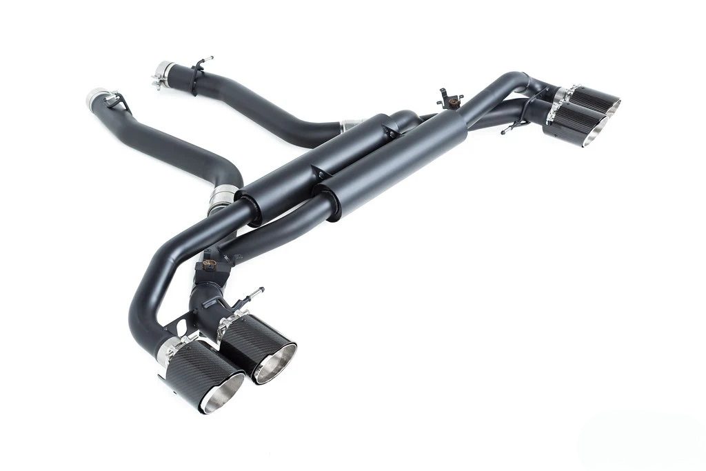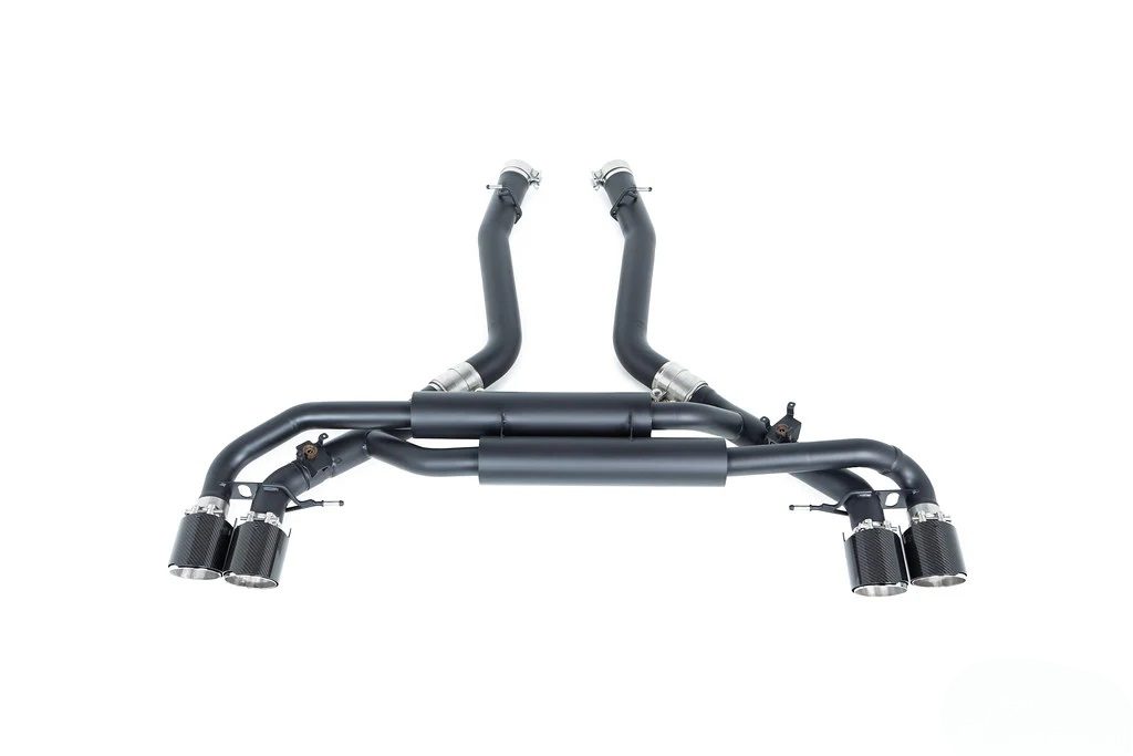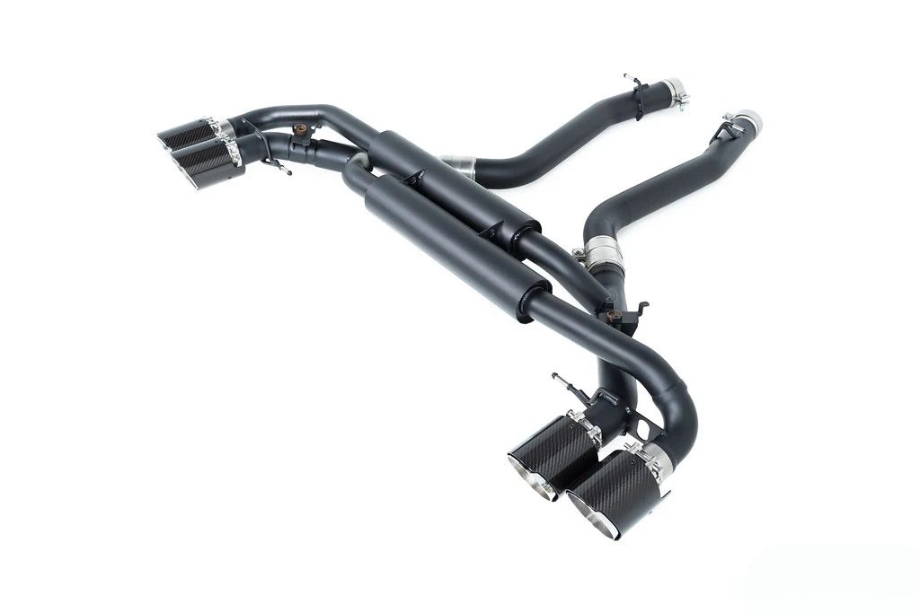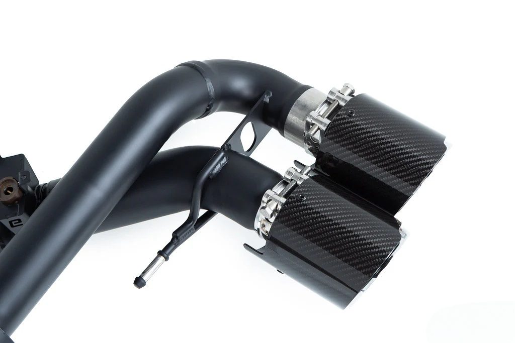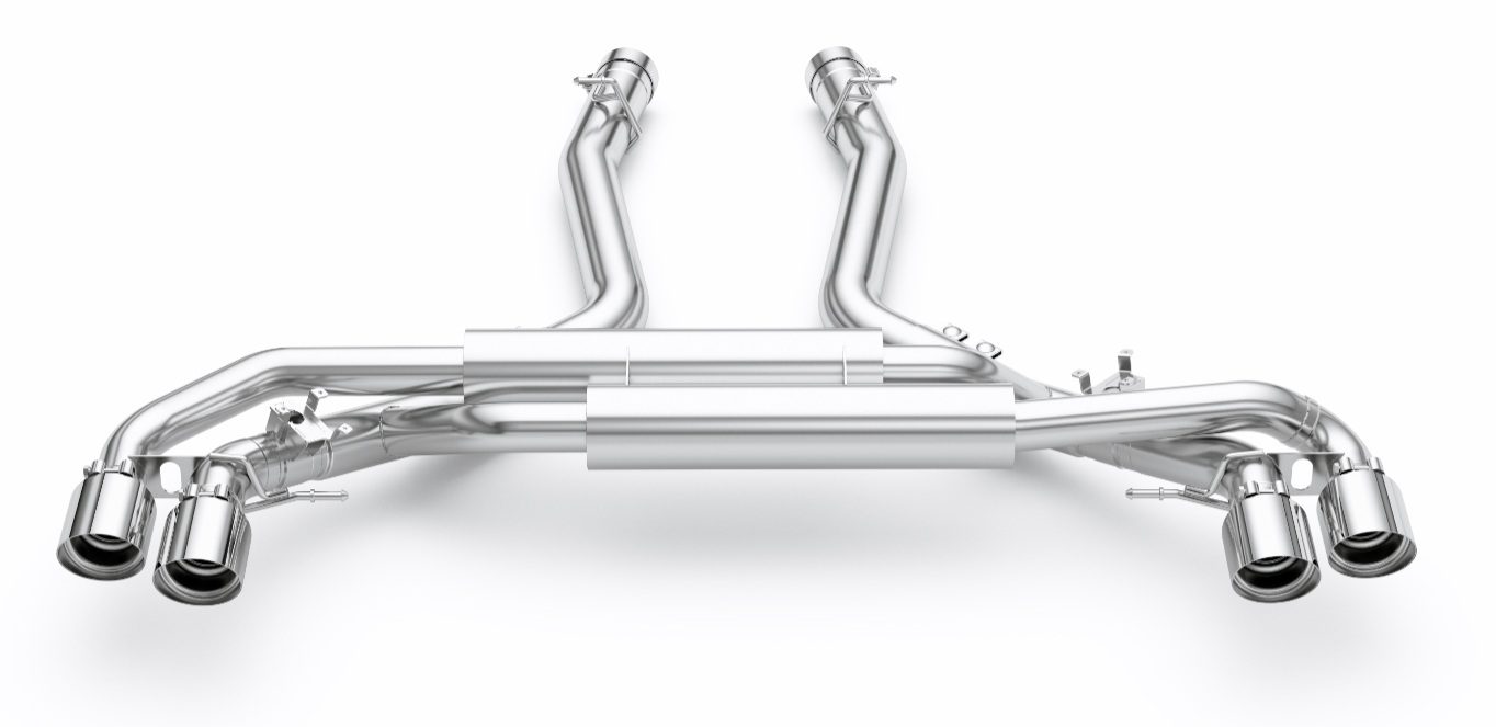 The Eisenmann Valved Exhaust System for the F95 BMW X5M and F96 BMW X6M is a premium performance upgrade engineered to deliver an ideal balance of everyday refinement and exhilarating sound. Specifically developed for BMW’s high-performance SUVs, this system allows drivers to enjoy a versatile exhaust experience that adapts seamlessly to any driving scenario. At the heart of the system is Eisenmann’s integrated valve technology, which works in harmony with the vehicle’s factory driving modes. With the valves closed, the exhaust produces a more subdued, refined tone suited for comfortable daily driving or highway cruising. Open the valves, and the system transforms the sound into a bold, motorsport-inspired growl, unleashing the full character of BMW’s twin-turbocharged V8 engine. This dual nature ensures that performance and excitement are always available on demand, without sacrificing usability. Visually, the system makes an equally powerful statement. Featuring quad 110mm LeMans-style slash-cut tips, it is available in three distinctive finishes — Silver, Black, or Carbon Fiber — allowing owners to tailor the rear aesthetic to their personal style. The large tips not only enhance the visual presence of the X5M and X6M but also underline the system’s performance-driven design. Each exhaust is handcrafted in Germany from high-grade stainless steel, ensuring exceptional durability, resistance to heat, and long-lasting quality. Beyond its striking sound and design, the Eisenmann Valved Exhaust System improves exhaust flow and reduces backpressure, enhancing throttle response and overall performance.