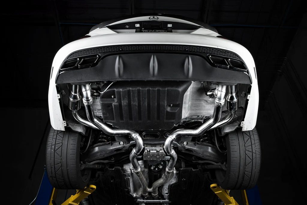 The Eisenmann Valved Exhaust System for the W205 Mercedes-Benz C 63 AMG and C 63 S AMG is a handcrafted performance upgrade engineered to unlock the full auditory and dynamic potential of AMG’s formidable twin-turbo V8. Built in Germany from premium T304 stainless steel, this system offers a seamless blend of aggression and refinement with factory-style valve control, allowing drivers to toggle between a deep, subdued tone and a fierce, race-inspired roar at the push of a button. Designed with a downpipe-back layout and optimized for smooth exhaust flow, the system features precise fitment behind the factory rear bumper and retains the OEM tip configuration for a clean, understated aesthetic. Whether cruising in comfort or driving with intensity, the Eisenmann system delivers a commanding sound and enhanced responsiveness worthy of the AMG badge.