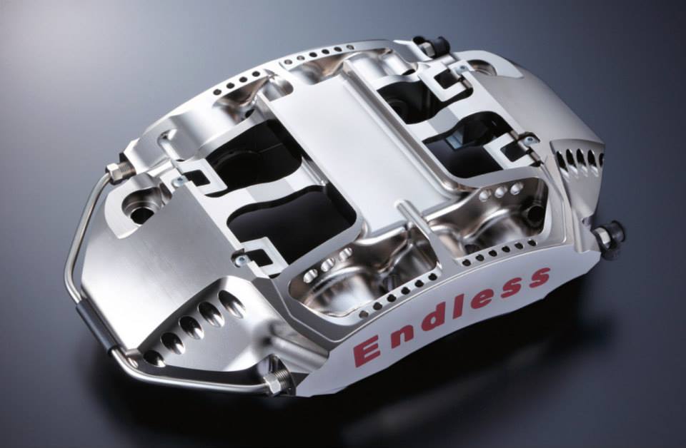 Monobloc Calipers forged and molded through several thousand tons of pressure. 4 years after its conception and 1 year after the completed prototype it was entered into test races repeatedly and changed its specifications while also obtaining a body that is sufficiently light and hard to compete in races. The processing of the highly difficult piston cylinder was cleared using advanced special technology. The finished body was completed using an ultra-hard anodized aluminum. It is the final product of the technology created by Endless and its “never-ending challenge” as it continues to focus on quality forging.