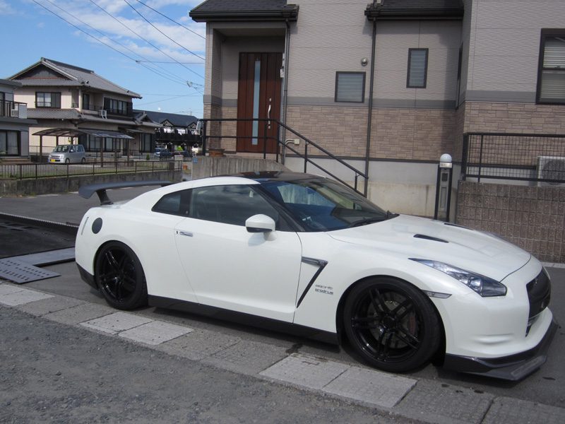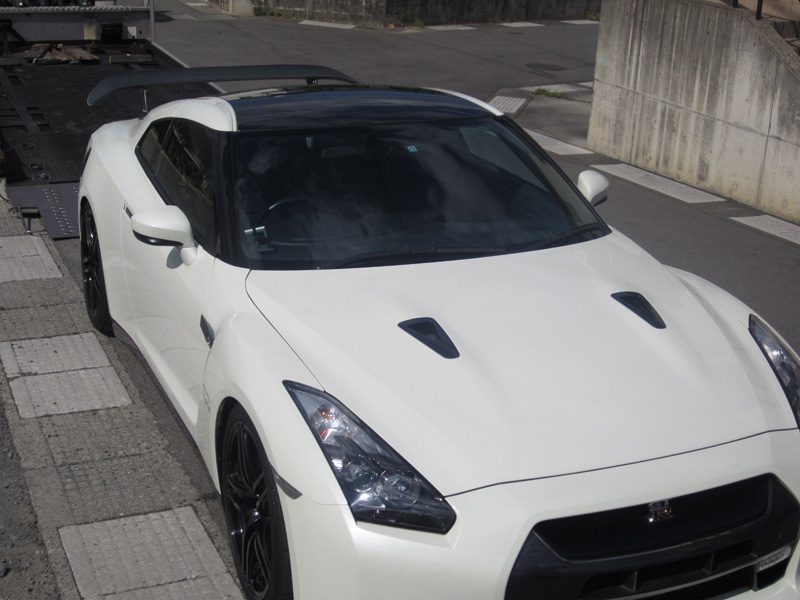 Carbon roof, designed for weight reductions on this Nissan GTR R35, gives the car an aggressive, track ready impression. Designed and manufactured by Esprit, a famous racing company in Japan. RACE USE DRY CARBON!
