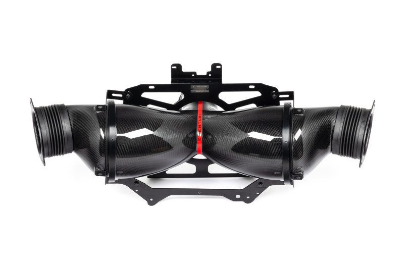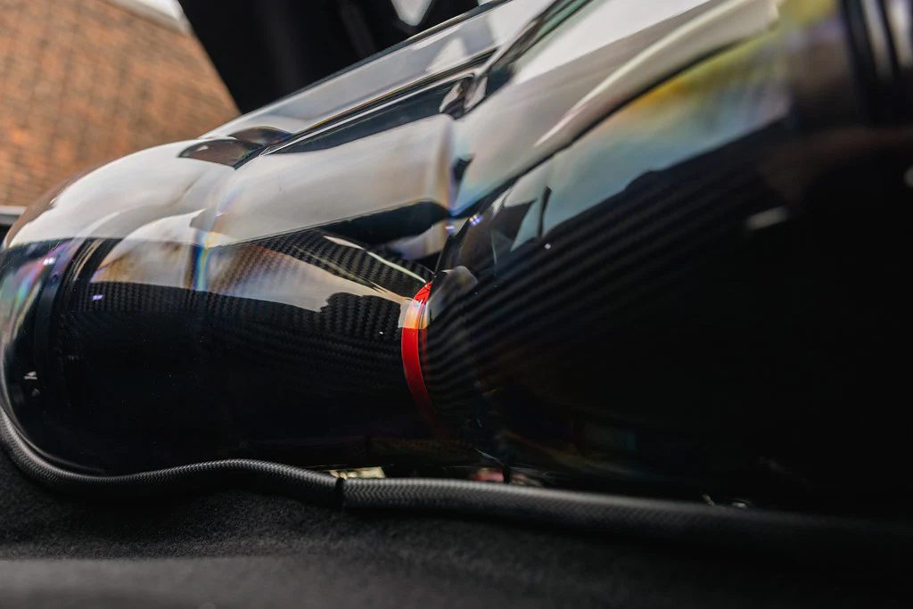The C8 Corvette Eventuri intake establishes a new benchmark for performance on this platform, offering the largest internal volume available. With the OEM trunk panel limiting the intake’s size and shape, Eventuri redesigned it to allow for a larger intake, using clear polycarbonate to showcase the carbon intake when the trunk is open. Utilizing their patented Venturi housing concept, the intake system allows airflow to pass through the filters with a less restrictive path, reducing drag. By increasing the intake’s overall volume, the flow capacity is significantly enhanced, catering to higher-powered builds for maximum performance gains. The system maintains low intake air temperatures through its fully sealed design, leveraging the OEM air feeds and carbon fiber’s low thermal conductivity. This results in industry-leading performance gains and a noticeable improvement in throttle response.