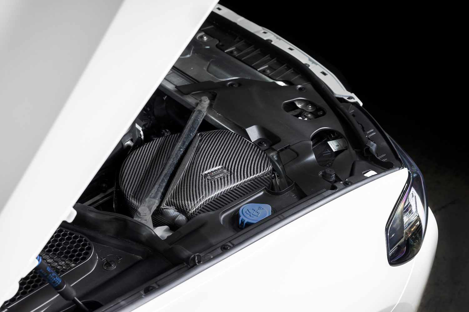 Eventuri’s cone filter uses a double-layer, non-woven mesh that is ISO-tested to meet OEM-level filtration. Built on a heat-stable urethane base, the cleanable element integrates an internal flow-guiding cone to converge airflow and avoid central stagnation, while its increased media surface area surpasses the stock panel filter for sustained, efficient breathing.