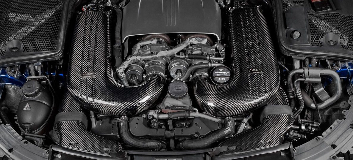 The Mercedes W205 C63S AMG intake system is the result of extensive development and testing. Eventuri’s design focused on three main objectives: increasing flow rate, lowering intake temperatures, and smoothing airflow. The first goal was achieved by maximizing the use of the limited space in the C63S engine bay, leading to a 39% increase in flow rate compared to the stock system. To meet the second objective, they designed a fully sealed system, crucial for preventing heat from the nearby turbos from affecting the intake. The final objective was accomplished by creating an organically shaped system with custom rounded panel filters, ensuring a smooth airflow path without sharp corners, which helps maintain laminar flow. With smooth transitions from the filters to the turbo inlets, the intake minimizes turbulence, allowing the turbos to operate more efficiently.