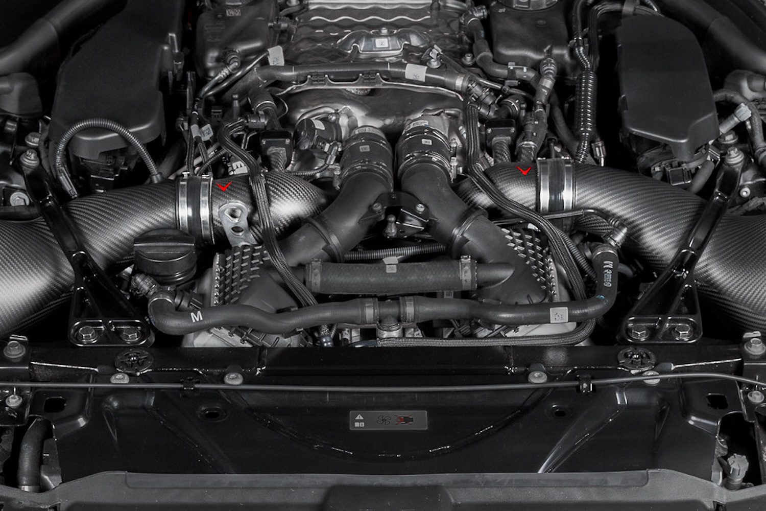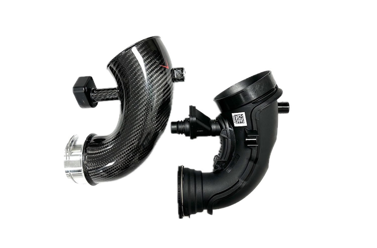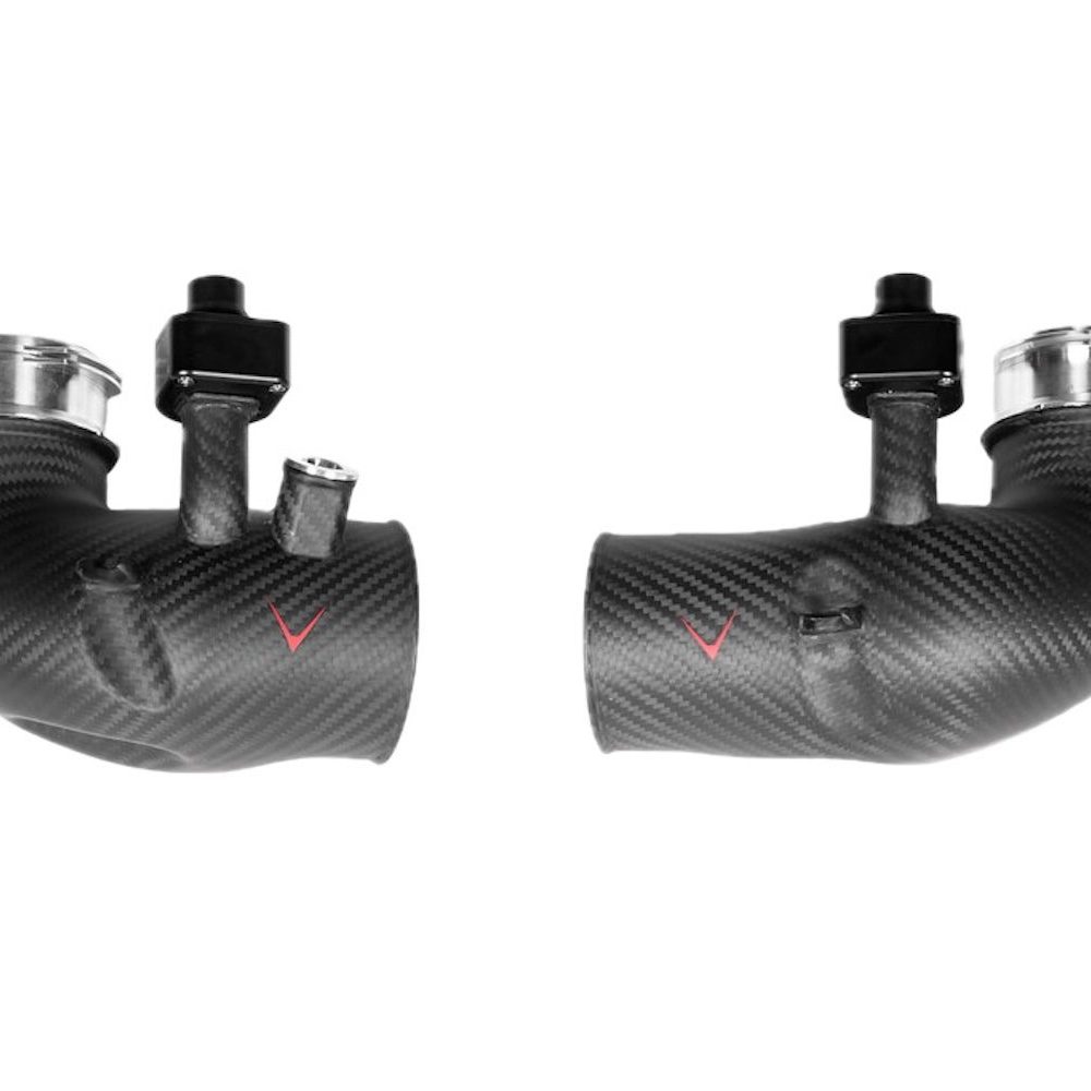 Eventuri’s Larger-diameter, high-temp carbon inlets for the F90 M5 reduce restriction and pressure drop, enabling quicker turbo spool and peak boost—while remaining fully compatible with Eventuri’s existing intake, no modifications required.