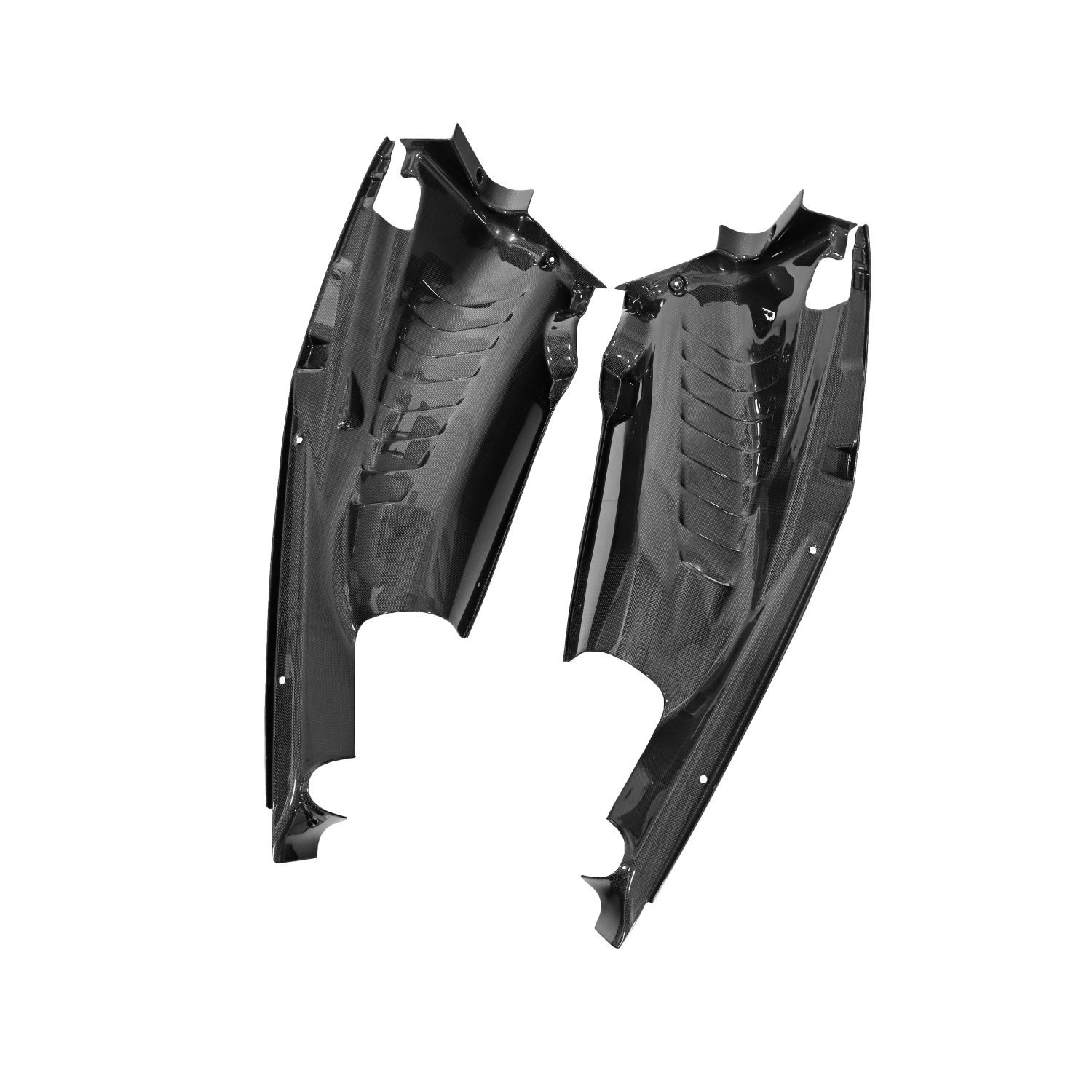 The Exotic Car Gear Carbon 6-Piece Engine-Bay Set is a premium enhancement for the Ferrari 488 GTB, 488 Pista, and F8 Tributo, meticulously crafted from high-quality 1×1 (3k twill weave) pre-impregnated toray dry carbon fiber. This set is designed to elevate the aesthetic and functional appeal of the engine bay, offering a sleek and lightweight upgrade that complements the vehicle’s performance and luxurious design. Each piece in the set is engineered for a precise fit and finish, ensuring seamless integration with the car’s existing components while providing a striking visual upgrade that showcases the advanced materials and engineering synonymous with Exotic Car Gear.