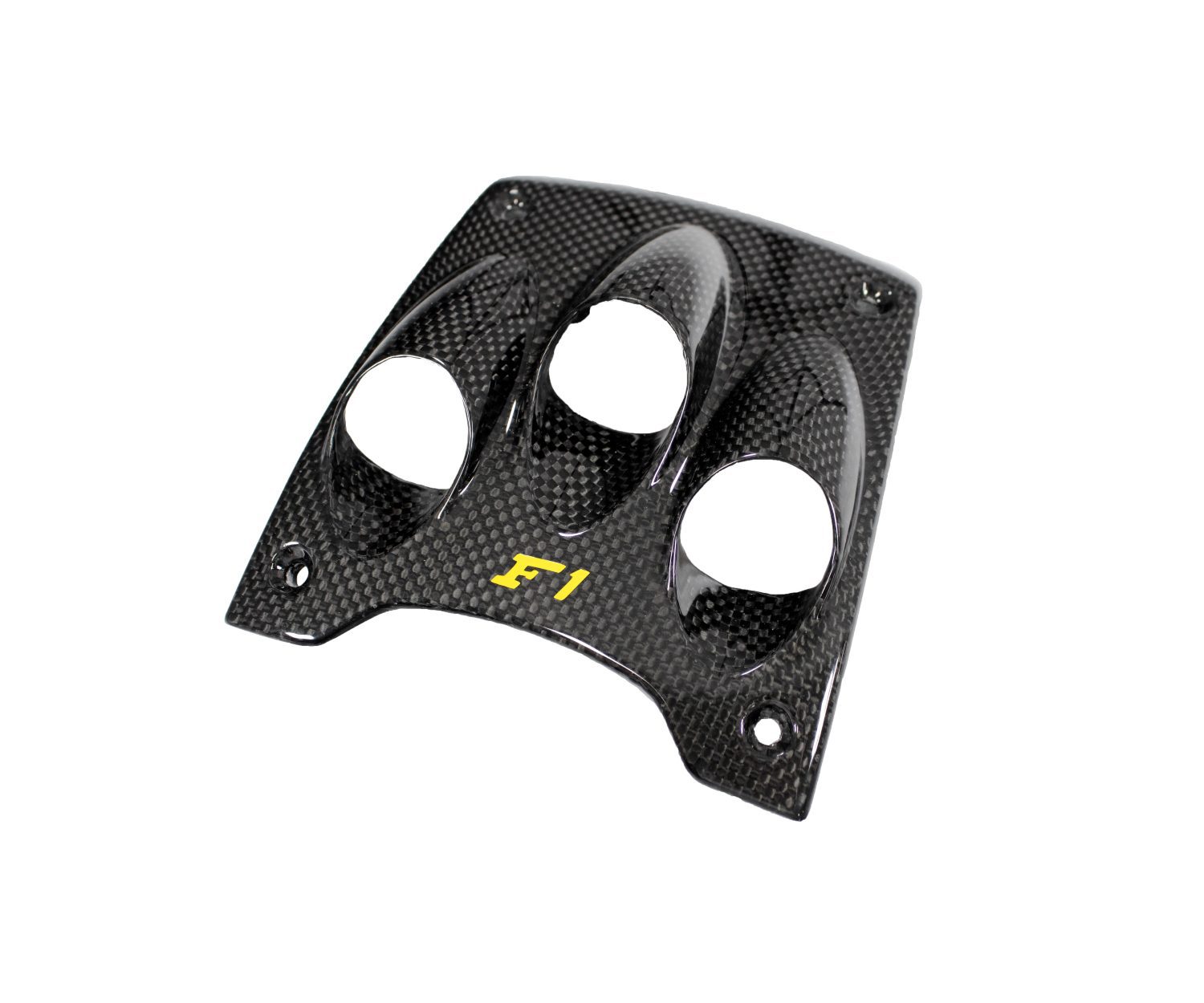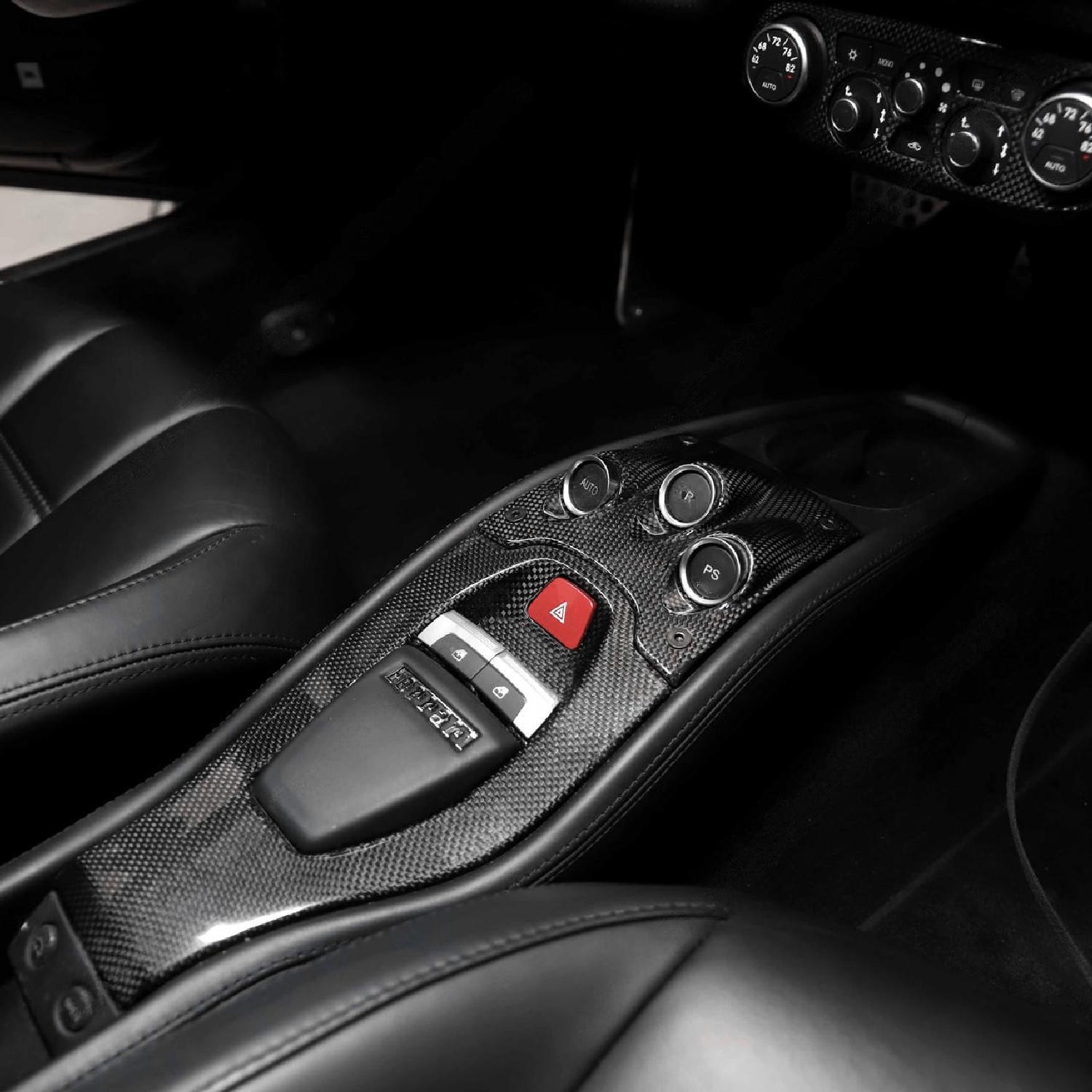The Exotic Car Gear Carbon Center Console F1 Trim for the Ferrari 458 enhances interior aesthetics with lightweight, durable carbon fiber construction, offering a sleek, race-inspired upgrade that complements the vehicle’s luxurious design.