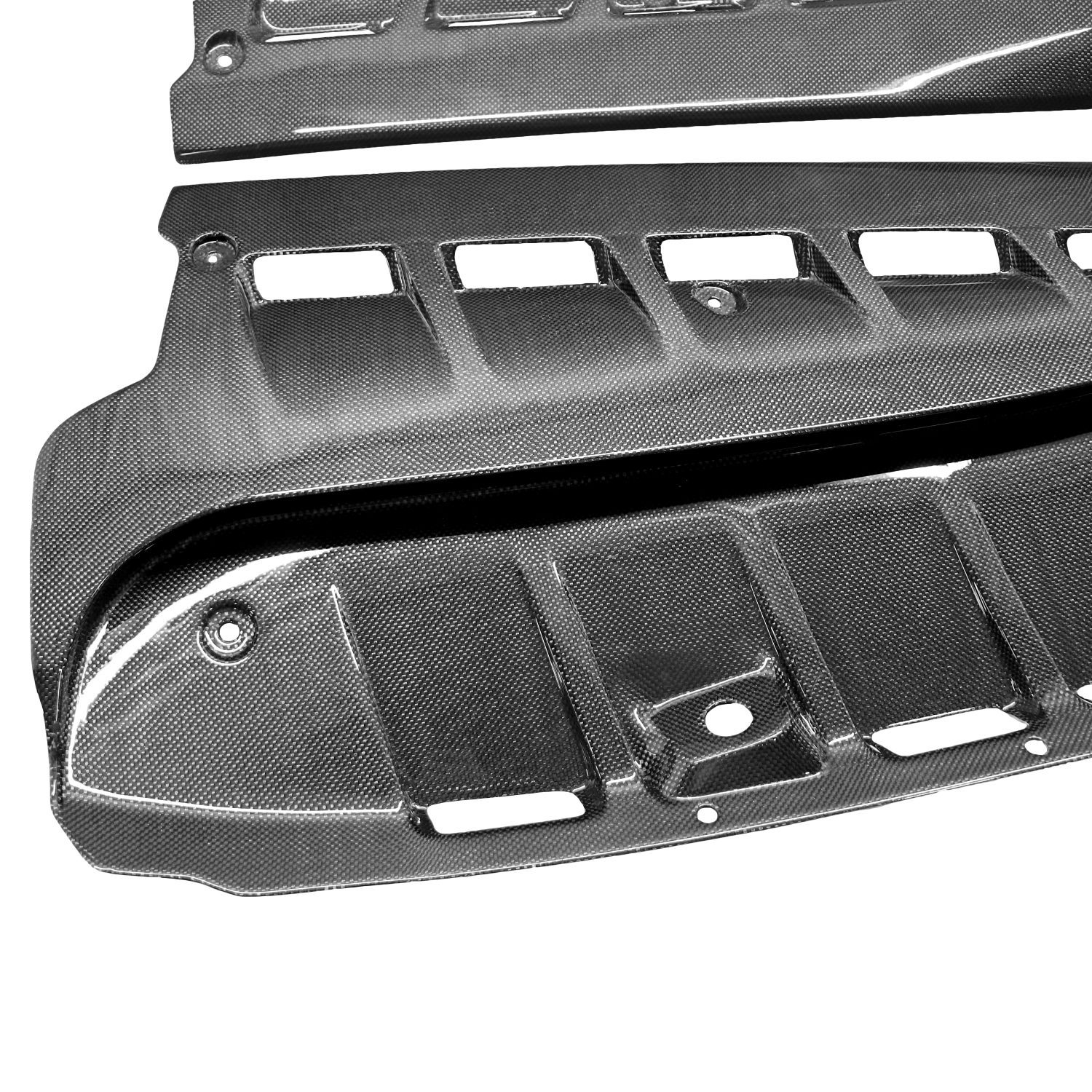 The Exotic Car Gear Carbon Engine-Bay Panel Set for the Ferrari F430 is a top-tier enhancement that significantly boosts the vehicle’s aesthetics and functionality. Constructed from premium 1×1 (3k twill weave) pre-impregnated toray dry carbon fiber, these panels provide unparalleled strength and lightness and accentuate the sleek design of the Ferrari F430. Designed to fit perfectly within the engine bay, they enhance the overall look while improving heat management and vehicle dynamics.