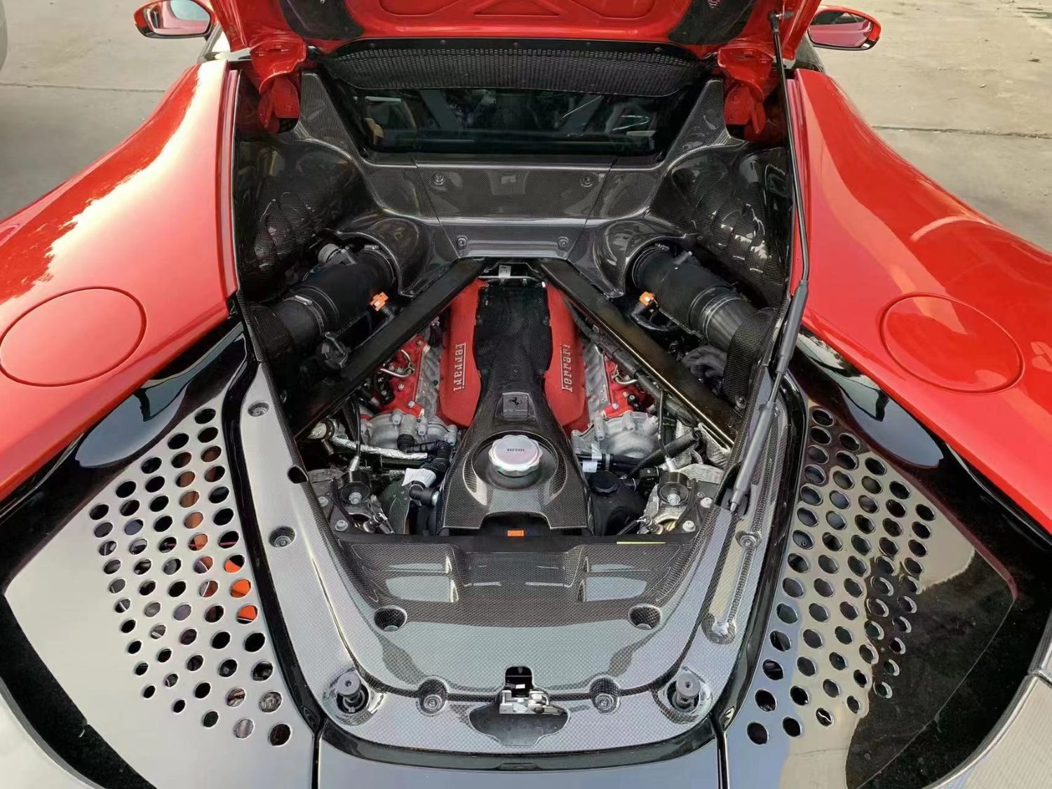 Exotic Car Gear Carbon Engine-Bay Panels for the Ferrari SF90 Stradale combine sleek 2×2 carbon fiber design with improved heat dissipation and lightweight performance.