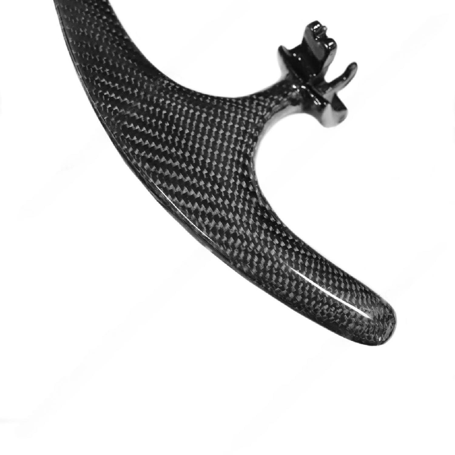 Exotic Car Gear’s Carbon GT-Extended Paddle Shifters for Porsche models offer a lightweight, durable upgrade with an extended, ergonomic design for enhanced gear shifting. They add a sleek, performance-focused look, improving both style and driving engagement.