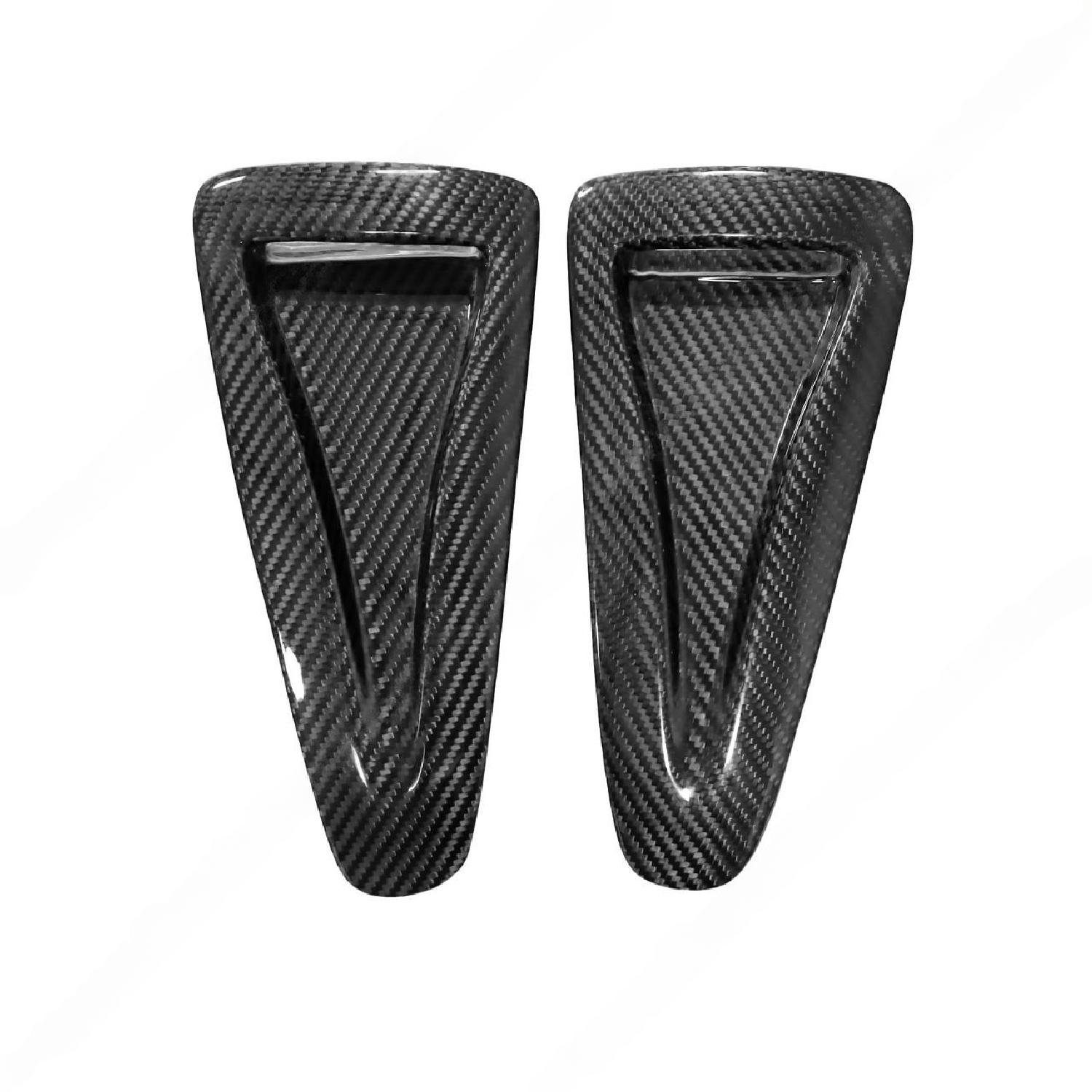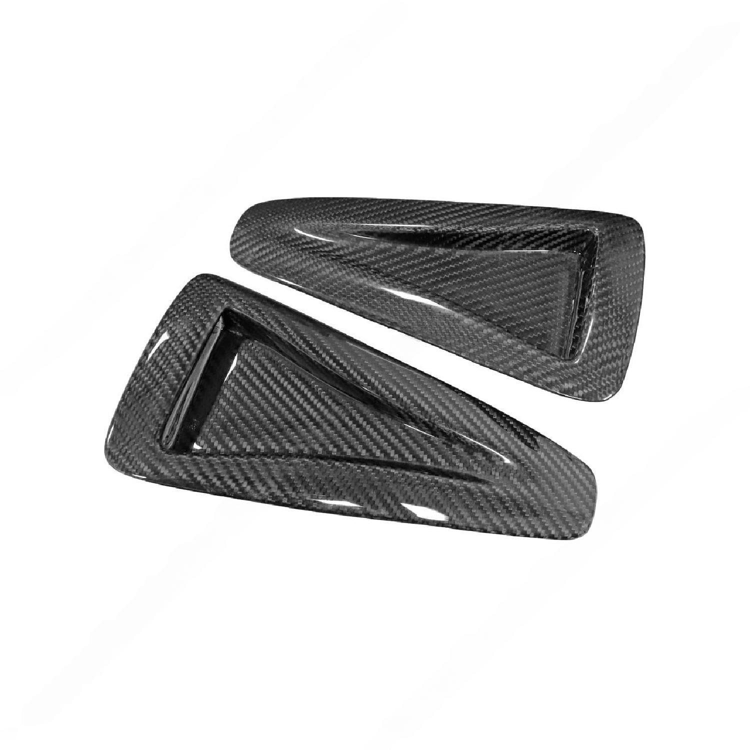 Exotic Car Gear Carbon Fiber Hood Vents for the R35 Nissan GT-R combine style and functionality. Made from premium carbon fiber, they improve engine cooling and optimize airflow for better performance. Their lightweight, durable construction enhances handling and acceleration without added weight. A high-gloss finish resists UV damage, maintaining a striking appearance. The race-inspired design complements the GT-R’s bold lines, delivering a dynamic and sporty aesthetic.