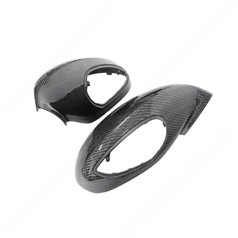Exotic Car Gear’s Carbon Mirror Housings for Porsche 911 and Boxster & Cayman models add a lightweight, durable upgrade with a sleek carbon fiber finish, enhancing aerodynamic efficiency and style. This race-inspired touch complements the Porsche’s design, ideal for enthusiasts seeking both performance and sophistication.
