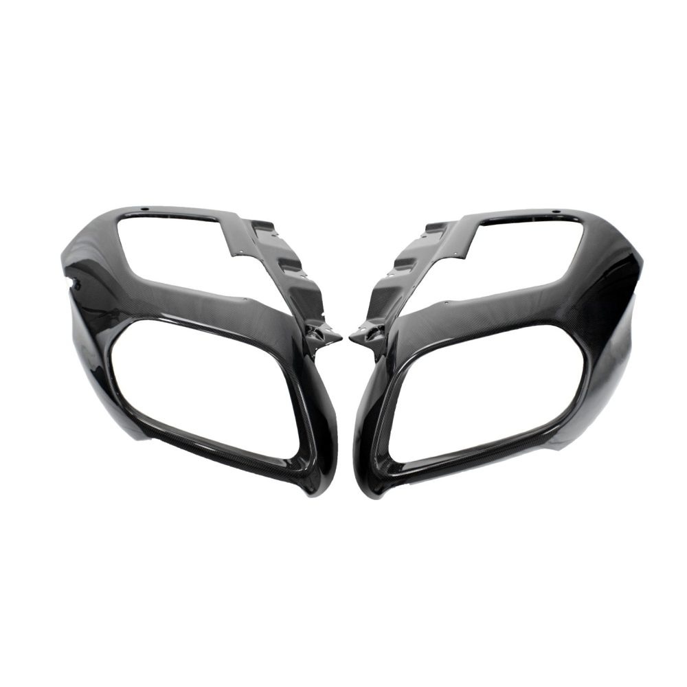 The Exotic Car Gear Carbon Rear Exhaust Outlet Trim Panels for the Ferrari 812 Superfast are meticulously designed to elevate the vehicle’s rear aesthetics and performance. Constructed from high-quality 1×1 (3k twill weave) pre-impregnated toray dry carbon fiber, these trim panels offer exceptional durability and a striking visual upgrade. The precision engineering ensures a perfect fit, enhancing the car’s aggressive rear profile while maintaining its lightweight and strong properties. Ideal for Ferrari enthusiasts seeking to personalize their supercar with a blend of sophistication and high-performance materials, these trim panels exemplify the pinnacle of automotive craftsmanship.