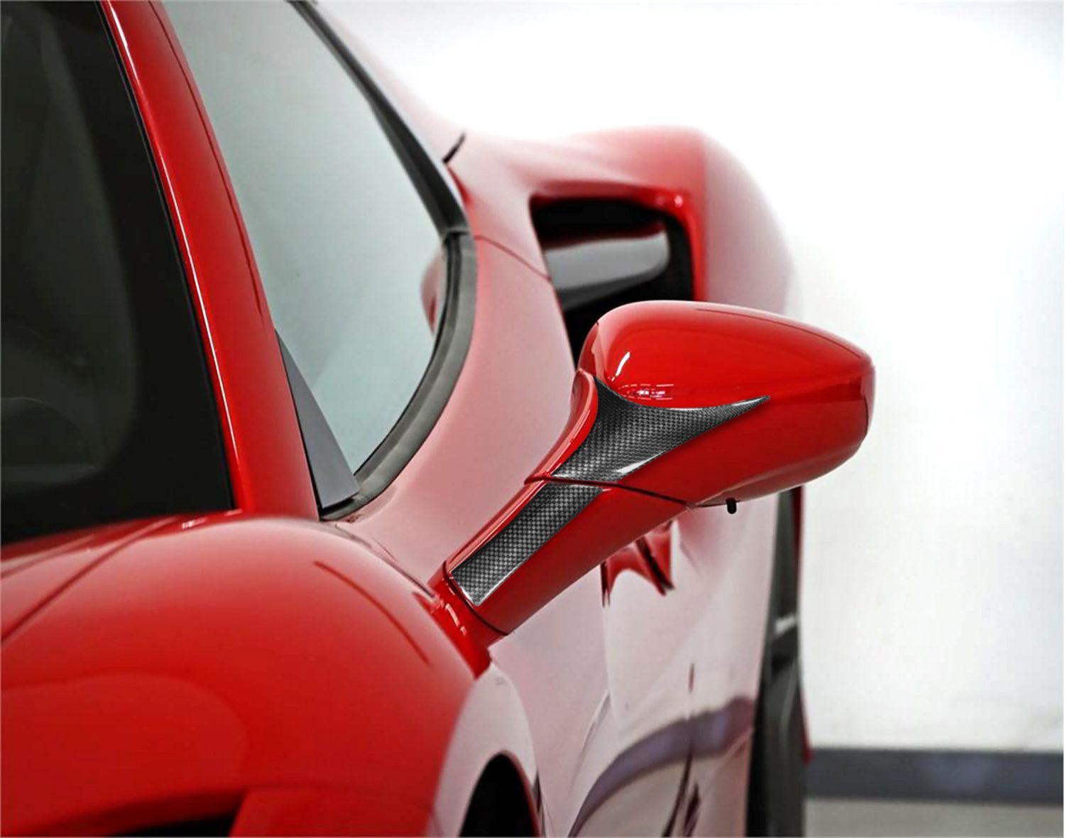 Exotic Car Gear Carbon Side Mirror Cover Trim for Ferrari F8 Tributo/Spider enhances style and aerodynamics with lightweight, durable carbon fiber construction.