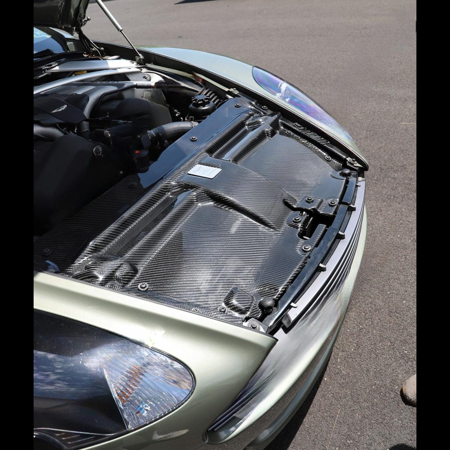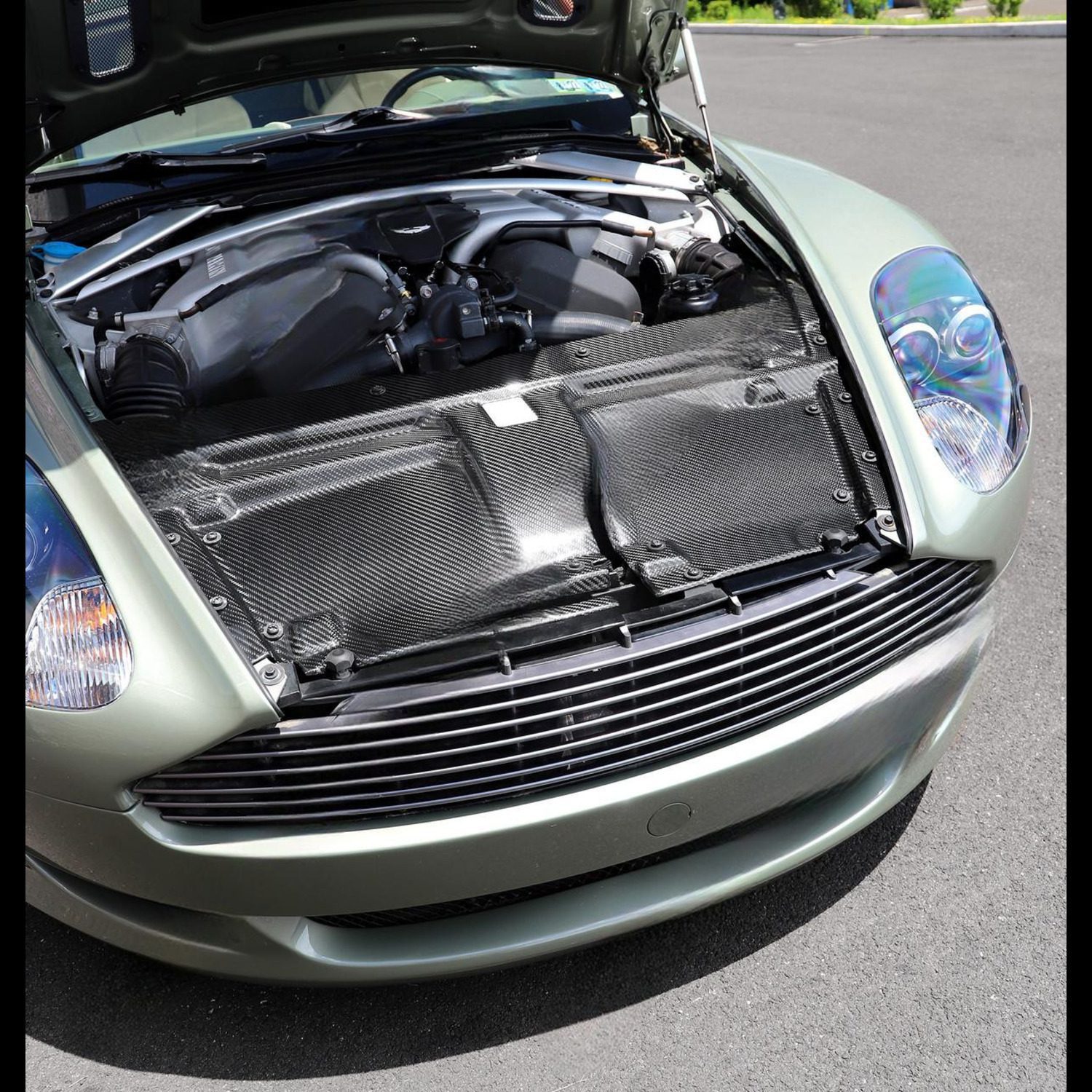 Exotic Car Gear’s Carbon Slam Panel for Aston Martin DB9, DBS, Rapide, and Virage is a premium upgrade for the engine bay, combining style and functionality. Made from high-quality carbon fiber, it is lightweight, durable, and designed for improved heat resistance. The sleek, high-gloss finish adds a motorsport-inspired, refined look that complements the luxury of Aston Martin models. Its precise fit ensures easy installation, seamlessly integrating with the factory components. The panel not only enhances aesthetics but also provides added strength to the front structure.