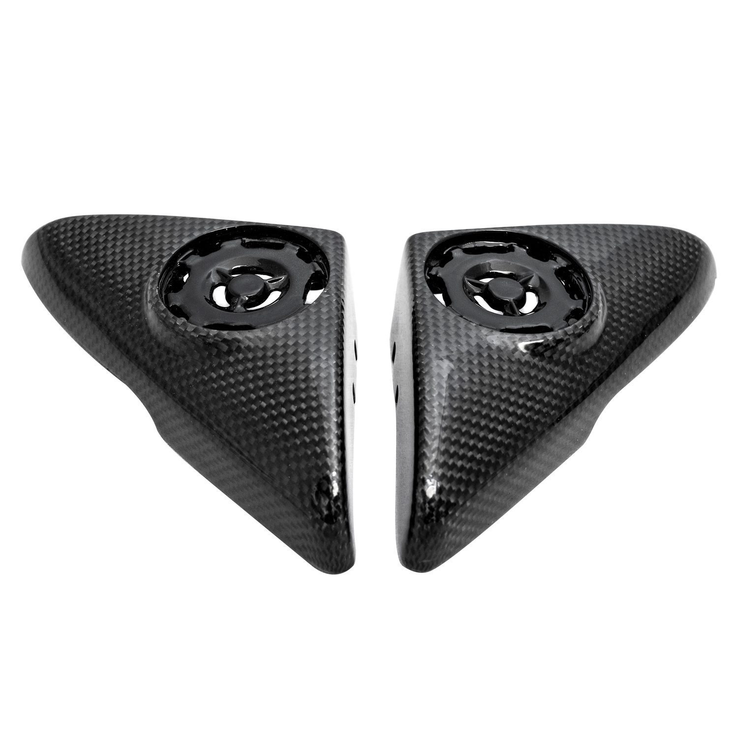 The Exotic Car Gear Carbon Tweeter Covers for Ferrari 360 Modena / F430 are meticulously crafted from high-quality 1×1 (3k twill weave) pre-impregnated toray dry carbon fiber, ensuring a perfect blend of strength and aesthetics. These covers provide a sleek, modern look to the car’s interior and offer superior durability and lightweight performance. Designed to seamlessly fit the Ferrari 360 and F430 models, these carbon tweeter covers enhance the vehicle’s audio system’s appearance while reflecting the premium craftsmanship and attention to detail that Exotic Car Gear is known for.