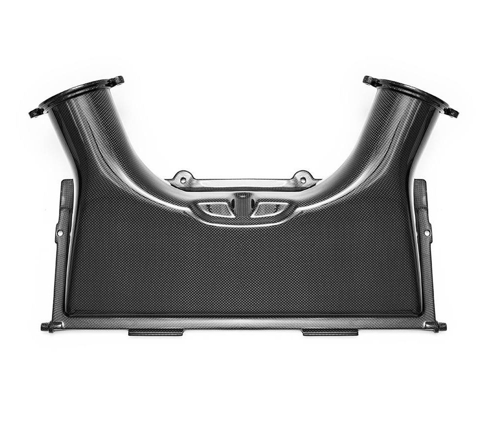 The Fabspeed Carbon Airbox Coverlid for the Ferrari 488 is a lightweight upgrade designed to enhance both performance and aesthetics. Constructed from 100% real carbon fiber, it features factory-matching 3k plain weave for a seamless, high-quality finish. This coverlid replaces the factory bumper blades, adding a sleek, aggressive look to the engine bay while reducing overall weight for improved handling and responsiveness.