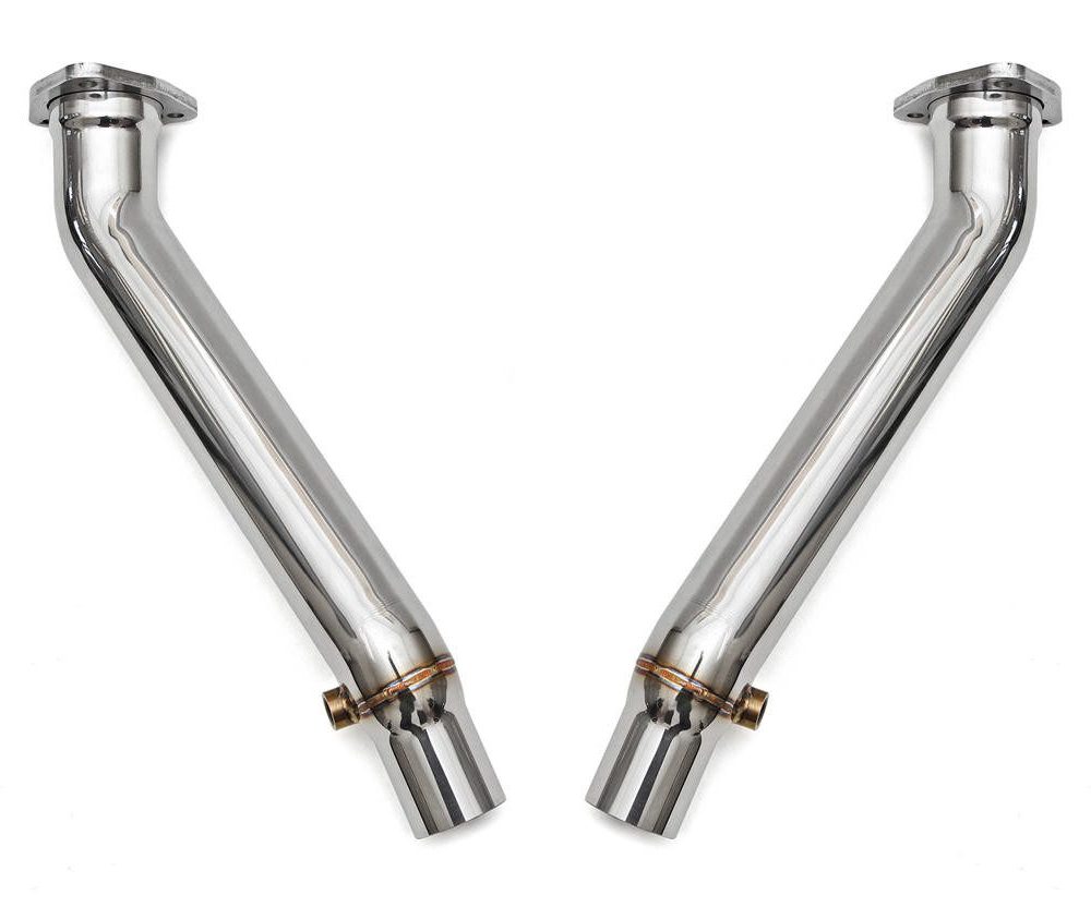 These link pipes dramatically elevate the sportscar sound while delivering substantial improvements in power and throttle response. Crafted with precision from high-quality 14-16 gauge C.N.C. mandrel-bent T304L stainless steel, these link pipes ensure optimum exhaust flow and maximum durability. Their direct bolt-on replacement design simplifies installation, making it easy for enthusiasts to enjoy the benefits of enhanced performance without hassle.