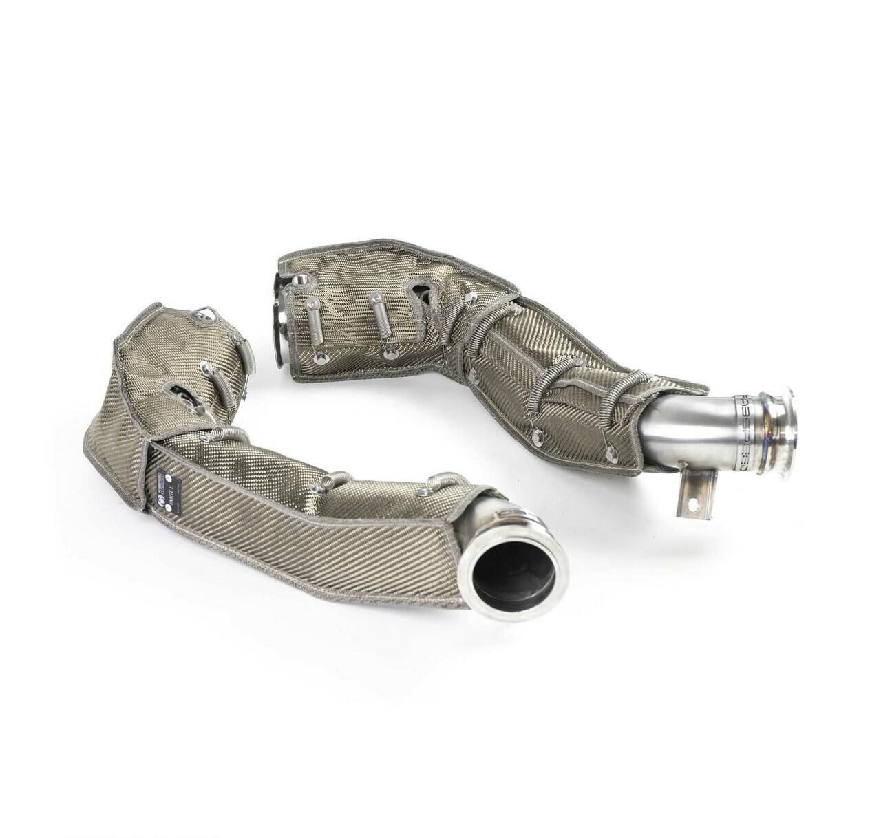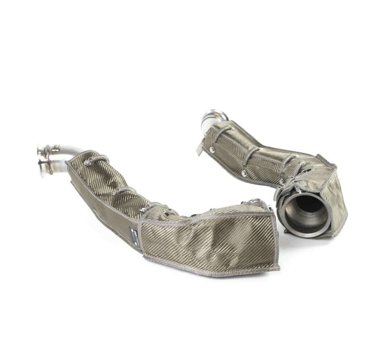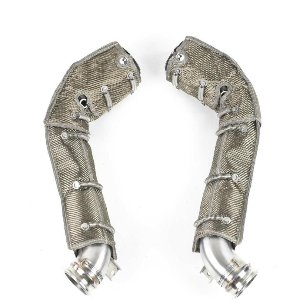 These competition link pipes add an incredibly aggressive exhaust note, delivering an exotic high-performance sound that sets your McLaren apart from the crowd. By replacing the restrictive factory equipment, maximum flow is achieved, optimizing the performance of your McLaren 720S. Crafted from high-quality 14-16 gauge CNC mandrel-bent T304L stainless steel and 321 stainless steel, durability and precision are guaranteed. Additionally, military-grade thermal blankets are included, ensuring optimal performance and durability.