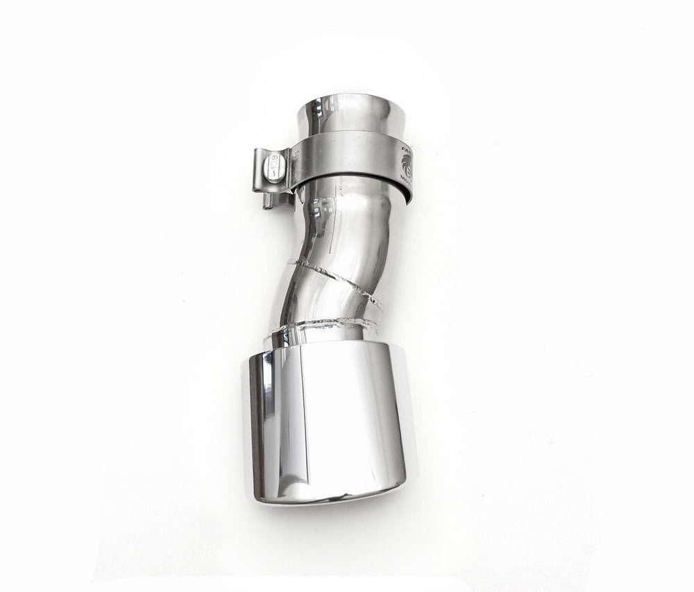 A polished stainless steel outlet tip is utilized to replace the factory right-side outlet, resulting in a more sporty appearance and finish.