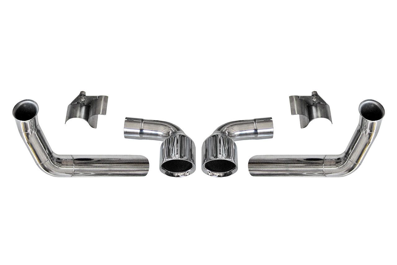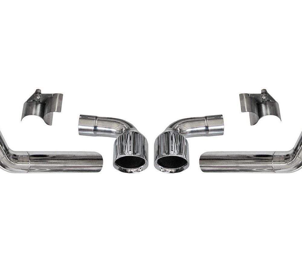 The Fabspeed GT3 Center Outlet Conversion Tips for the 997 Porsche 911 Carrera 4 / 4S / S are designed to enhance the look and performance of vehicles with GT3-style bumpers featuring a center exhaust cutout. These conversion tips require the use of Fabspeed side muffler exhaust systems in combination with either Fabspeed’s Sportcat X-Pipe or aftermarket catalyst for optimal performance. Constructed from high-quality 14-16 gauge T304 stainless steel, these tips provide a durable and stylish upgrade that adds a distinctive, aggressive look to the rear of the vehicle while improving exhaust flow and sound.