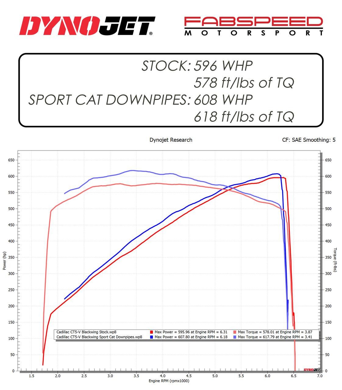 Introducing Fabspeed’s high-flow downpipes, meticulously designed for the Blackwing CT5-V and crafted from T304L stainless steel with 200 CPSI sport cats. Upon installation, these downpipes significantly amplify the volume and help in bringing out the signature lopey American V8 sound from the LT4 engine. Fabspeed has conducted in-house dyno tests on these Sport Cats Downpipes using their Dynojet, revealing curve gains of as much as 34 hp and 54 ft/lbs (at the crank) of torque over the stock equipment.